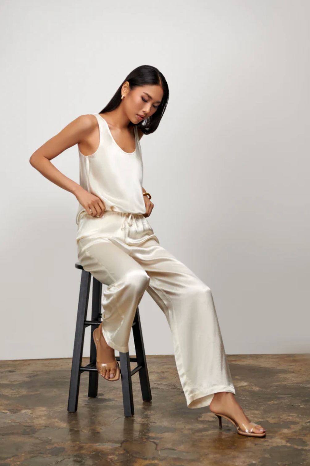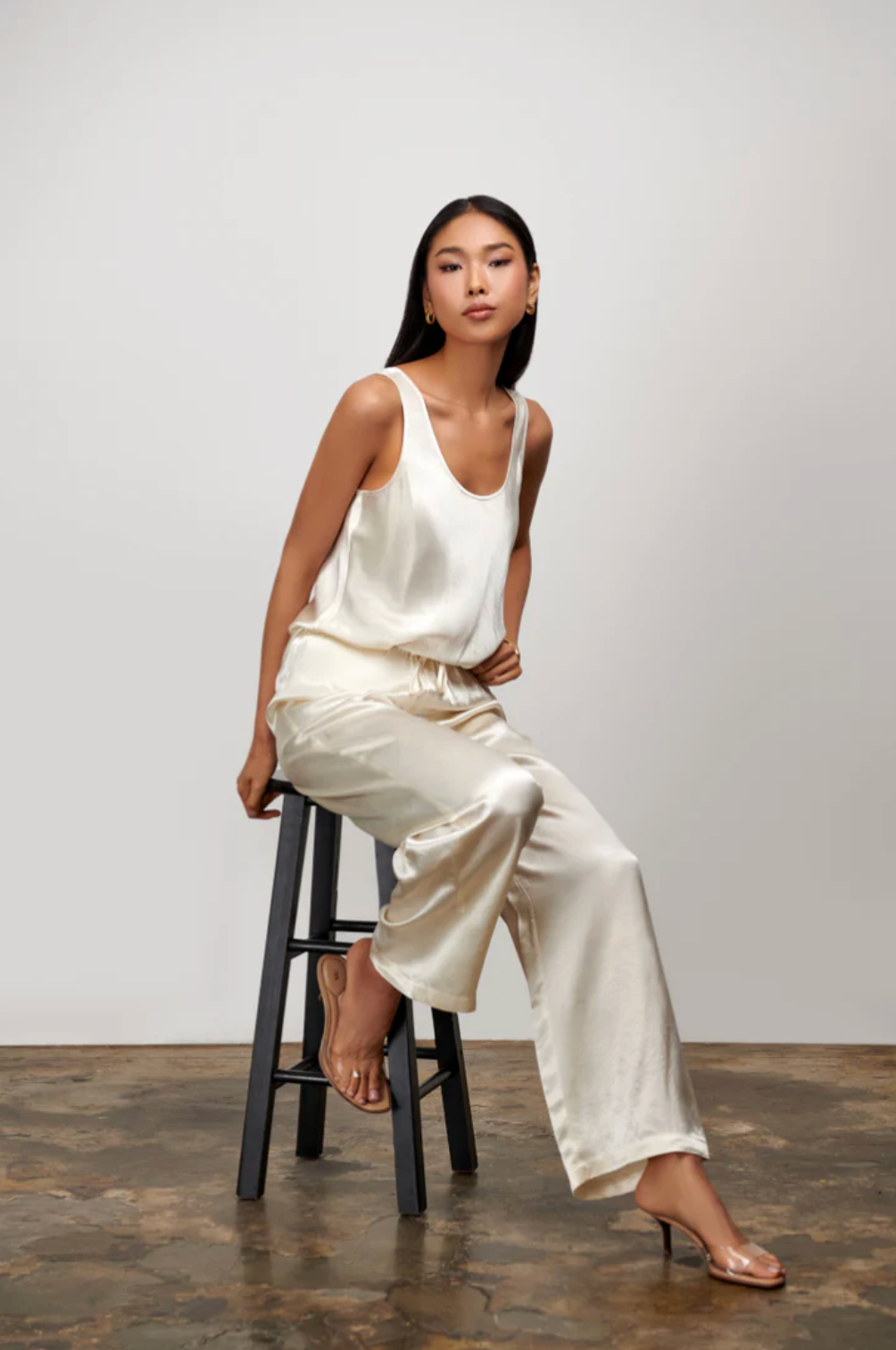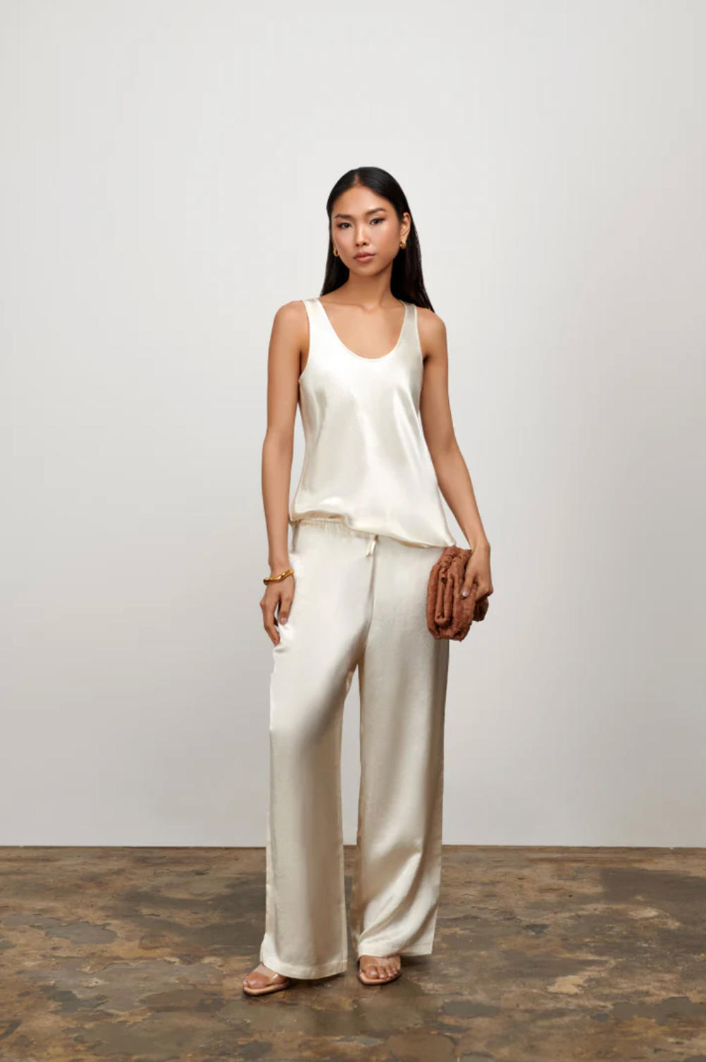 Effortlessly sleek, the Esme Satin Pant are designed to take you from day to night with ease. Featuring a relaxed straight leg cut and a comfortable drawstring waist, they strike the perfect balance between style and laid-back comfort. Pairs perfectly as a set with Alaia Satin Top or keep casual with our a relaxed shirt.
