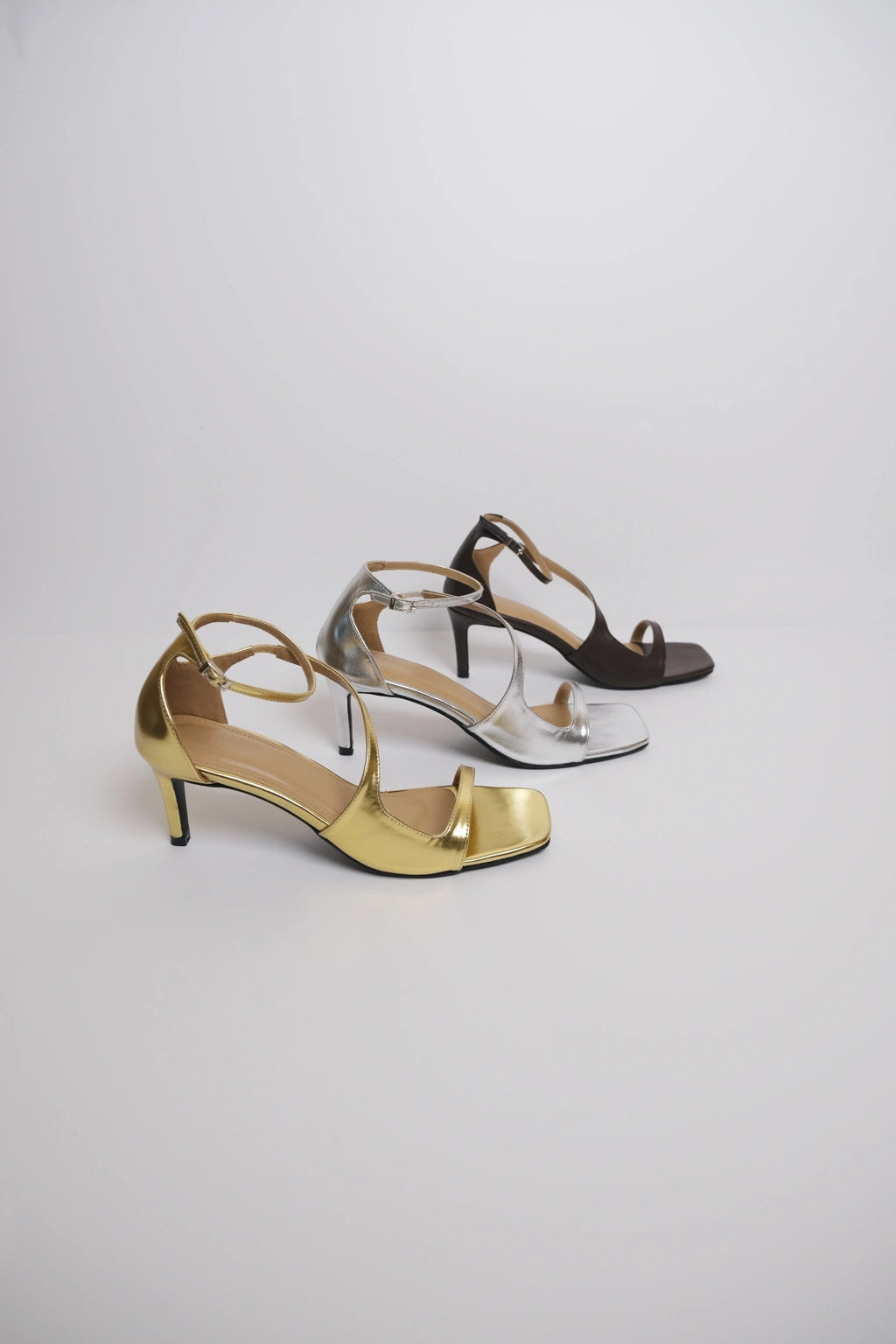 Designed to stand out with ease. The Stella Heel features delicate, modern straps with adjustable details and a soft elastic band for a secure, effortless fit. Sculptural and refined, it brings a touch of shine to any occasion—elevated, feminine, and endlessly wearable.