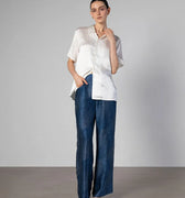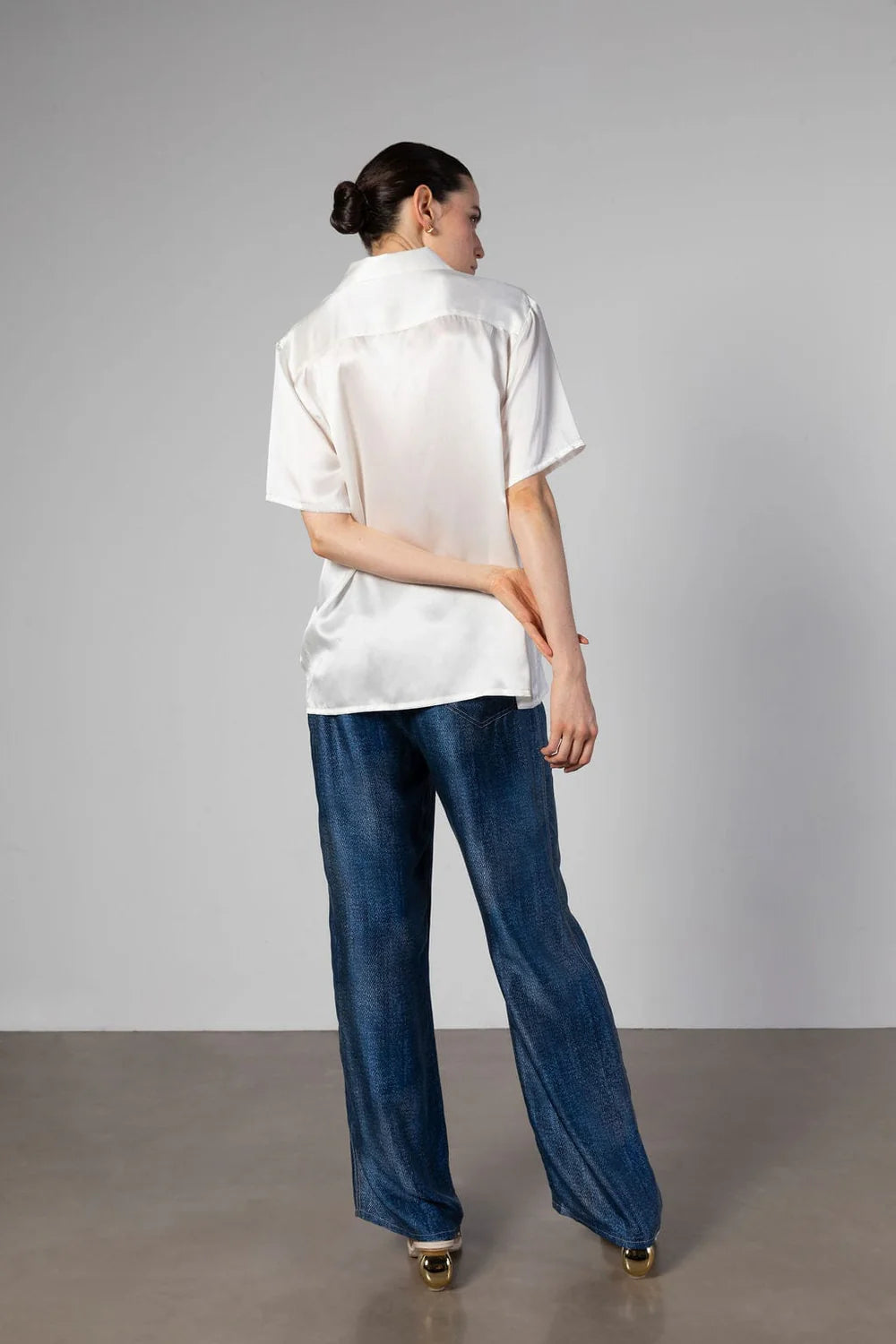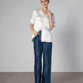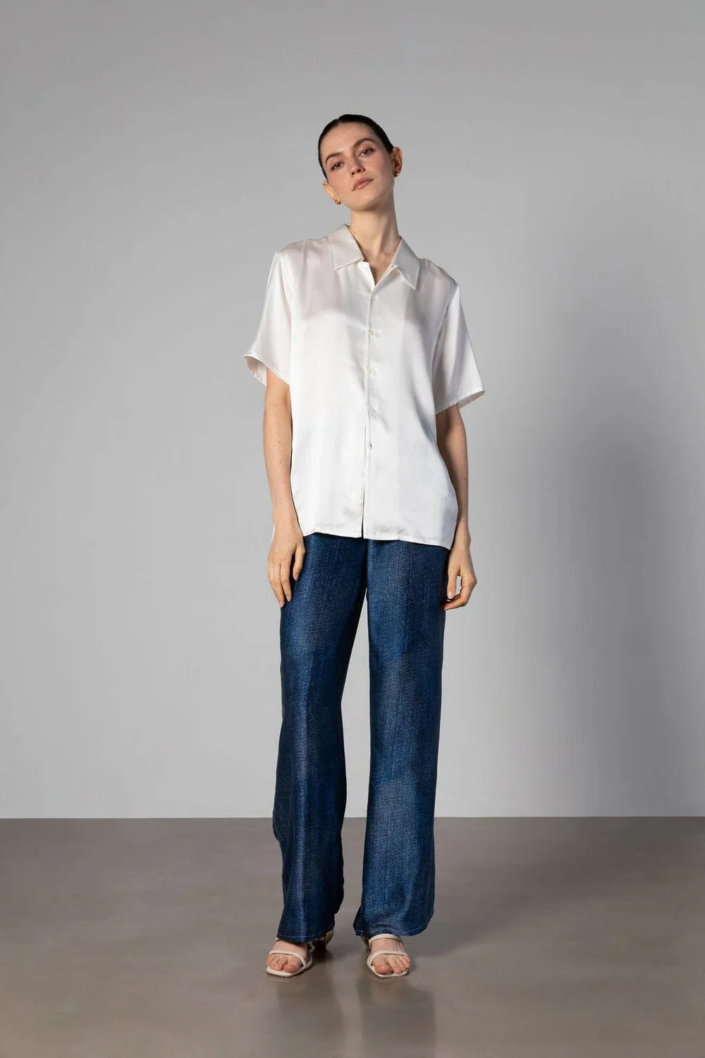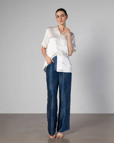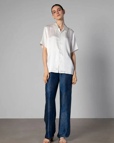 Our Camden Silk Shirt gently flows with a slightly oversized silhouette. Complete with open flat camp collar, finished with French seams. A wardrobe elevated essential that you will wear on repeat.