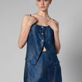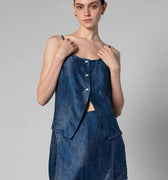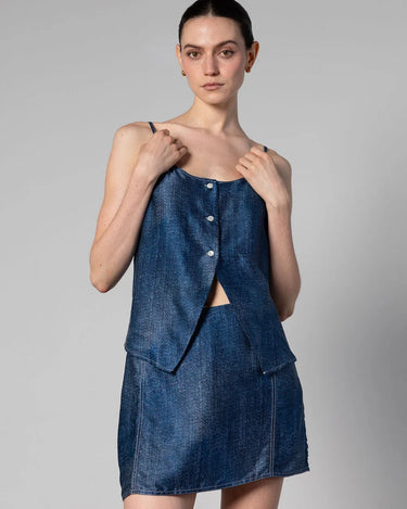 This top can be worn with absolutely everything from skirts to jeans & dressed up for a night out. For a laid back look match with our silk denim jeans in dark denim or our jeans mini skirt.
