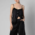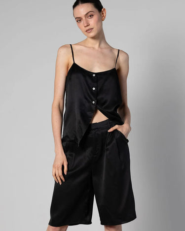 Silk functional shell button up camisole. Fully lined using 100% silk at the front. Single lined bra height back for easy wear & breathability. Cut out detail drape. Soft neckline with adjustable rose gold hardware straps.