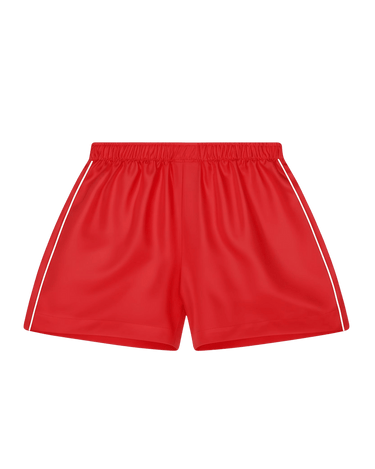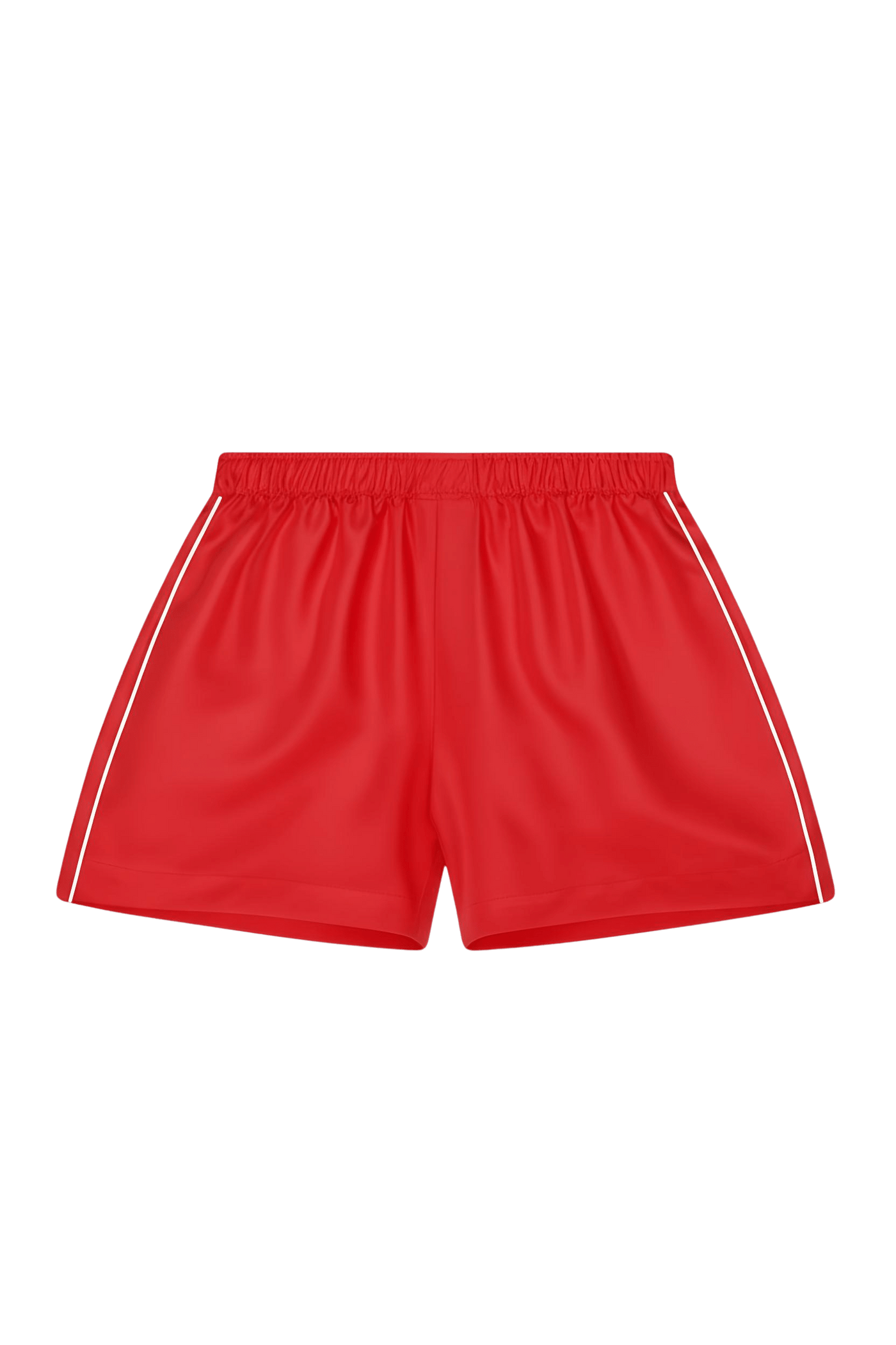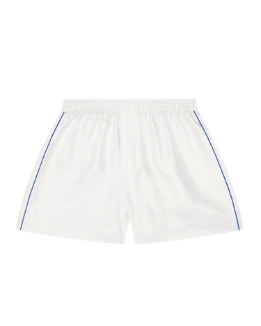 Sporty In Silk. Ultimate in easy dressing, made from premium Silk Twill to add structure. Complete 4 pockets for the ultimate in function and form. Finished with a Double lined elasticated waistband and contrast silk navy blue piping.