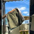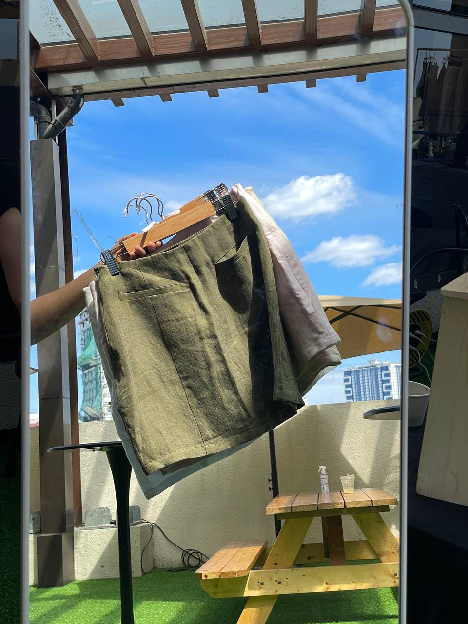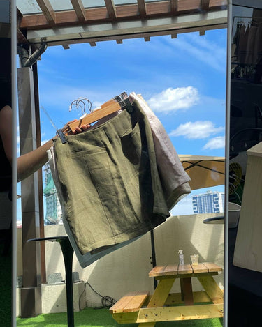 Evone Linen Mini Skirt celebrates the beauty in the mundane and the ordinariness. It features an easy a-line cut with two functional welt pockets that can be worn vice versa (front/back). Available in ivory (cream), army, white, and black.