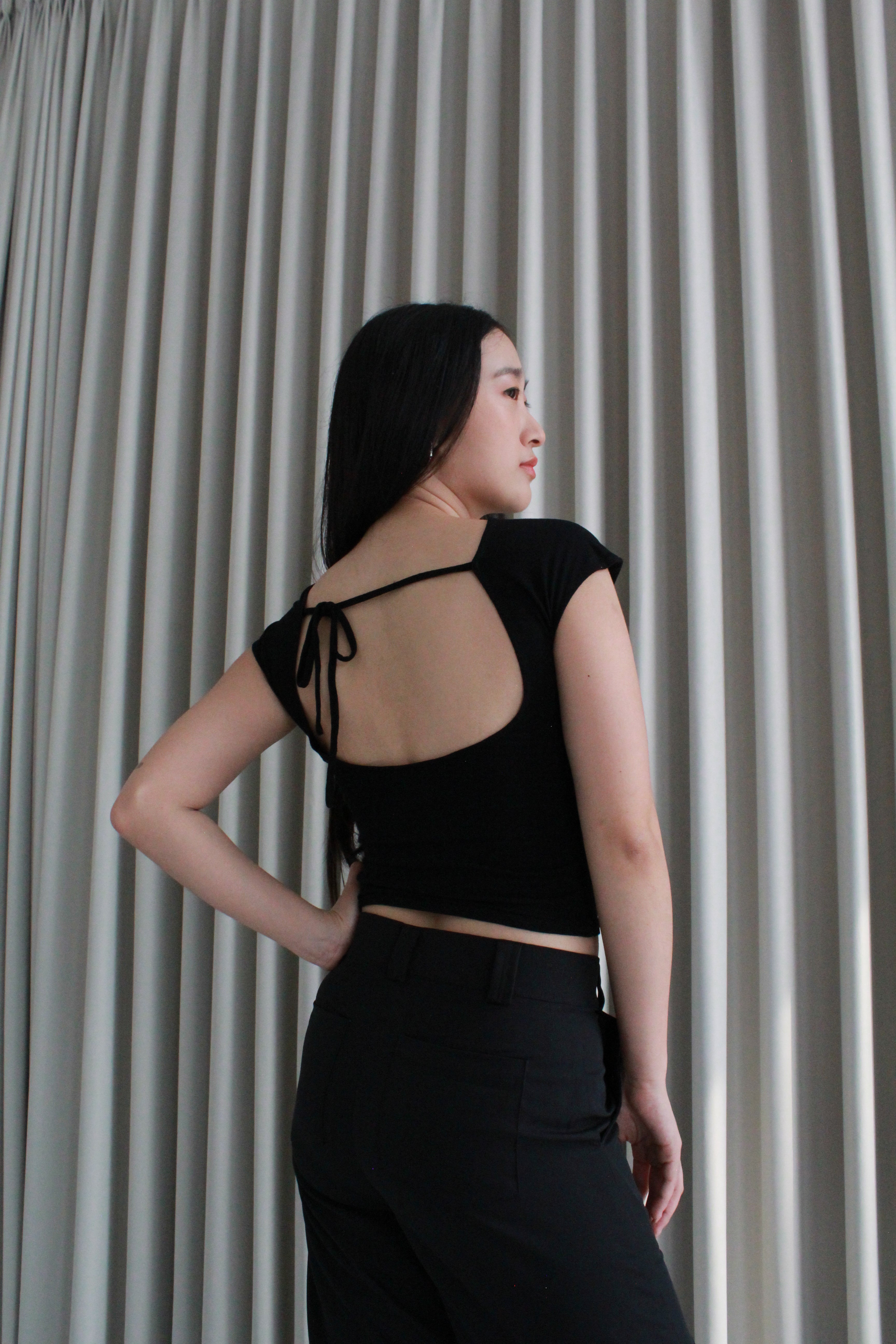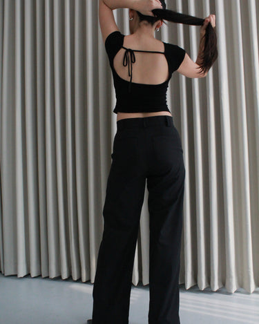 Haarlem Backless Top featuring a bold design with a backless silhouette and strap detail, this top is perfect for any occasion - day or night. Simple, yet eye-catching, it adds a touch of effortless elegance to your wardrobe.