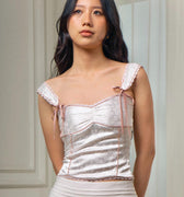 Removable satin straps that can be worn 4 ways: strapless, with sleeves, as a halter or as spaghetti straps. Back is elasticated. The floral is made of 100% cotton while white is made of satin