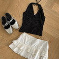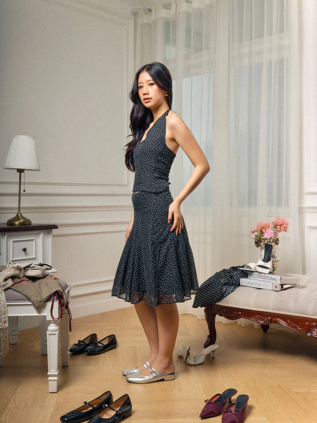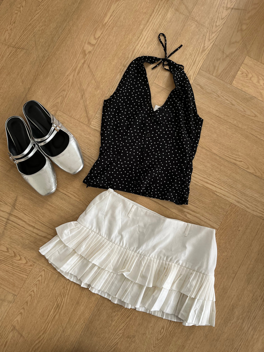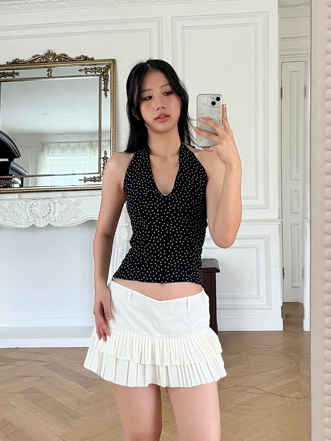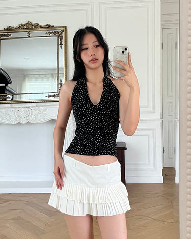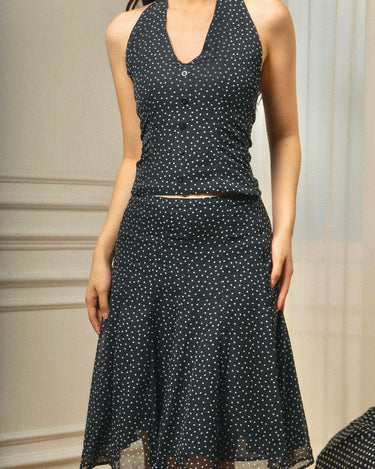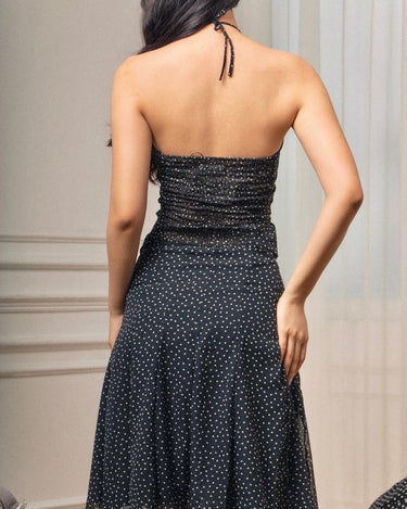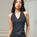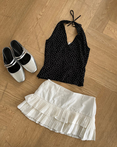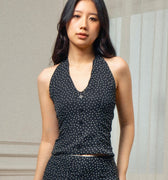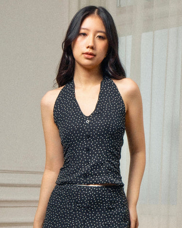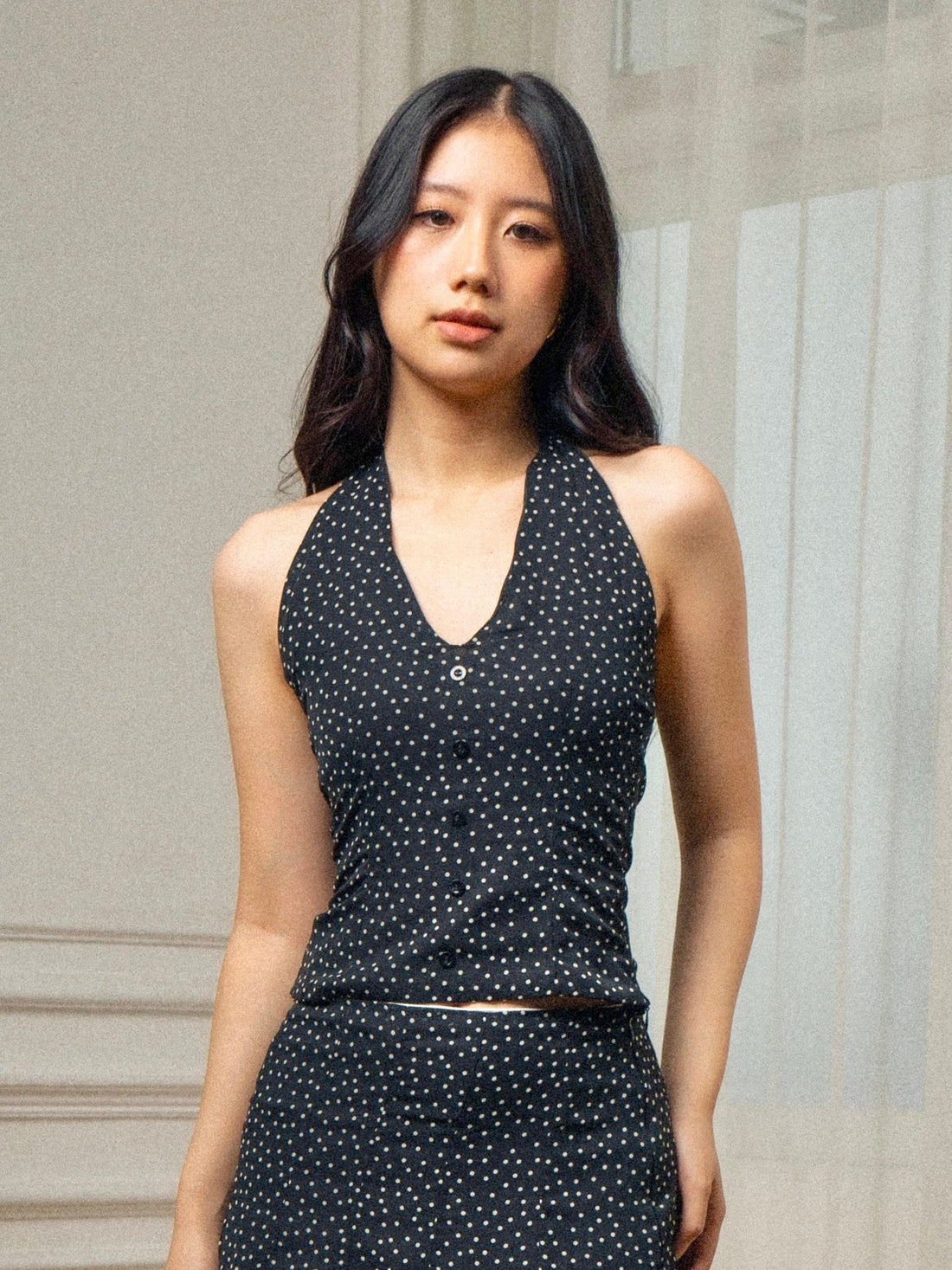 With halter ties and an elasticated back. Front buttons are decorational. Pairs as a set with the Alva Midi Skirt