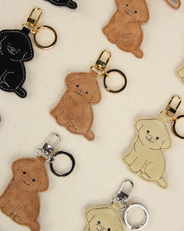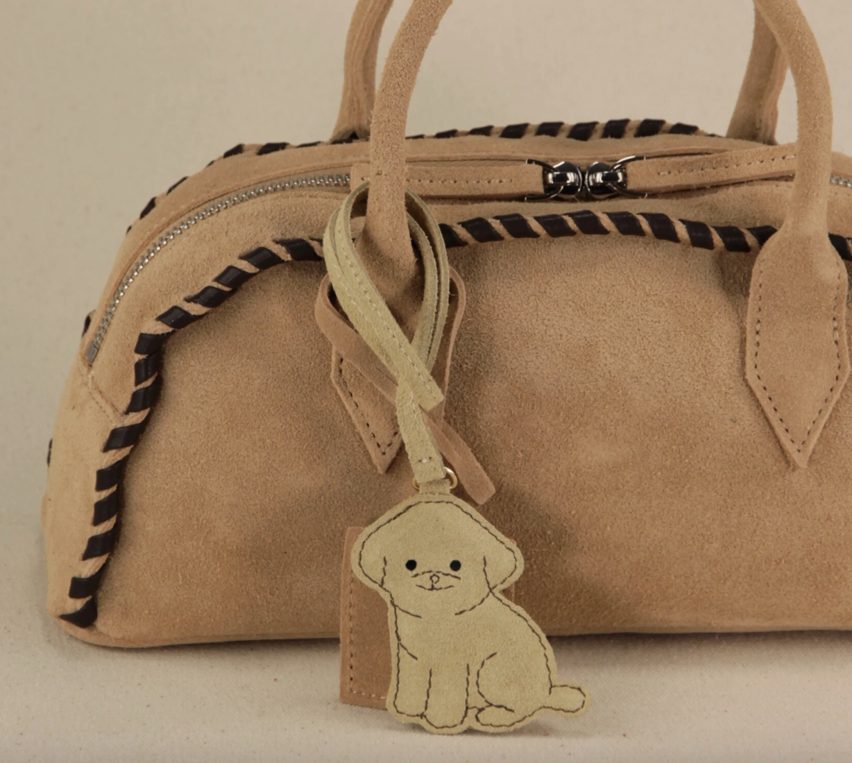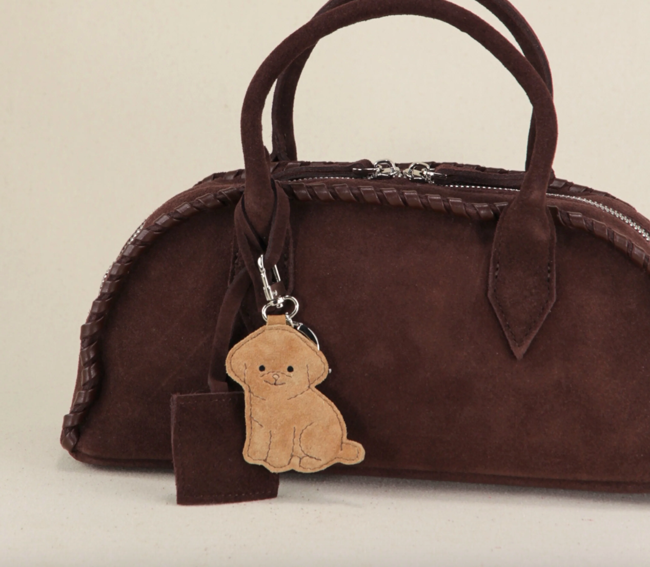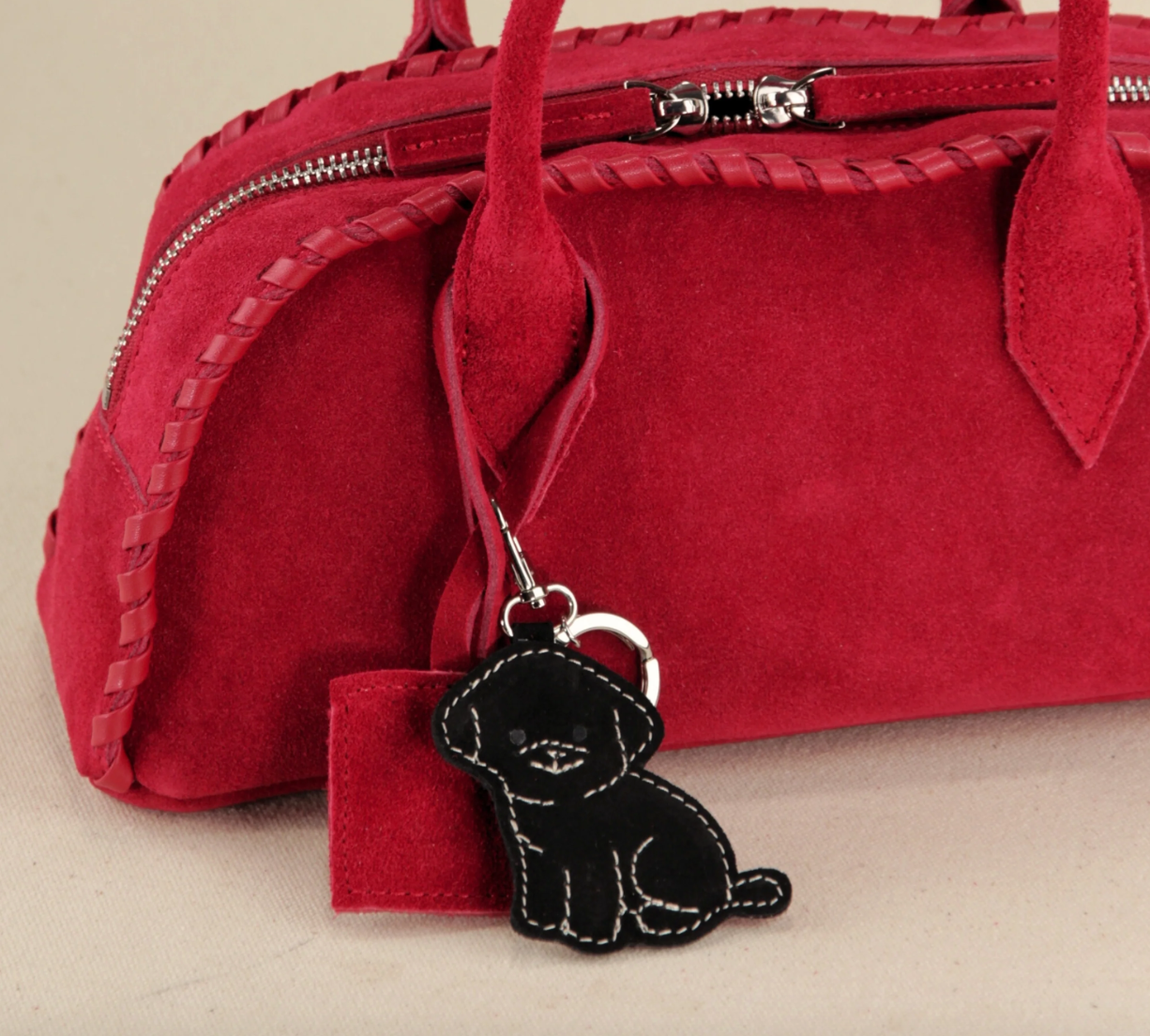 The Petits Amis Poodle Charm – A petite expression of personality and charm. This poodle-shaped accessory is crafted from 100% genuine Italian suede leather, bringing character and sophistication to any bag