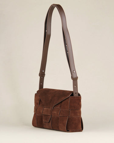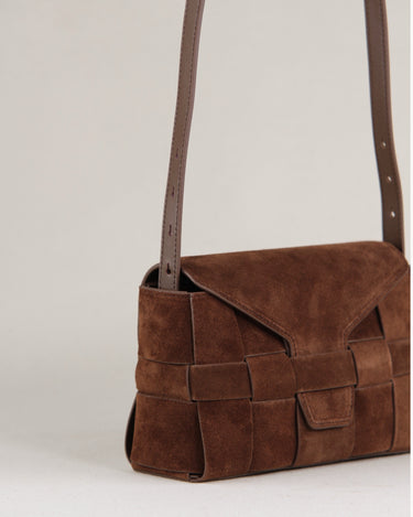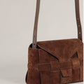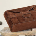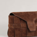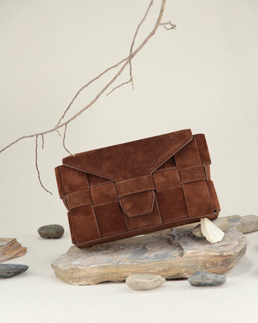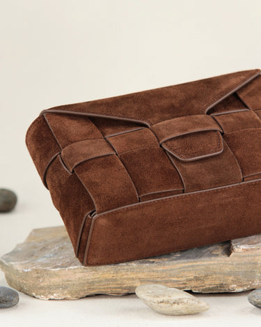 The Tessa Collection – made from genuine suede leather with a woven finish that adds quiet texture. Designed with a zip compartment inside and a strap that adjusts for shoulder or crossbody wear — or can be removed entirely for a clean, handheld look. It balances structure and softness in just the right way. Minimal. Functional. Effortlessly modern.