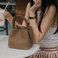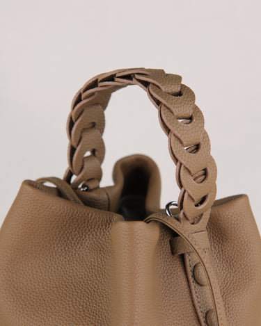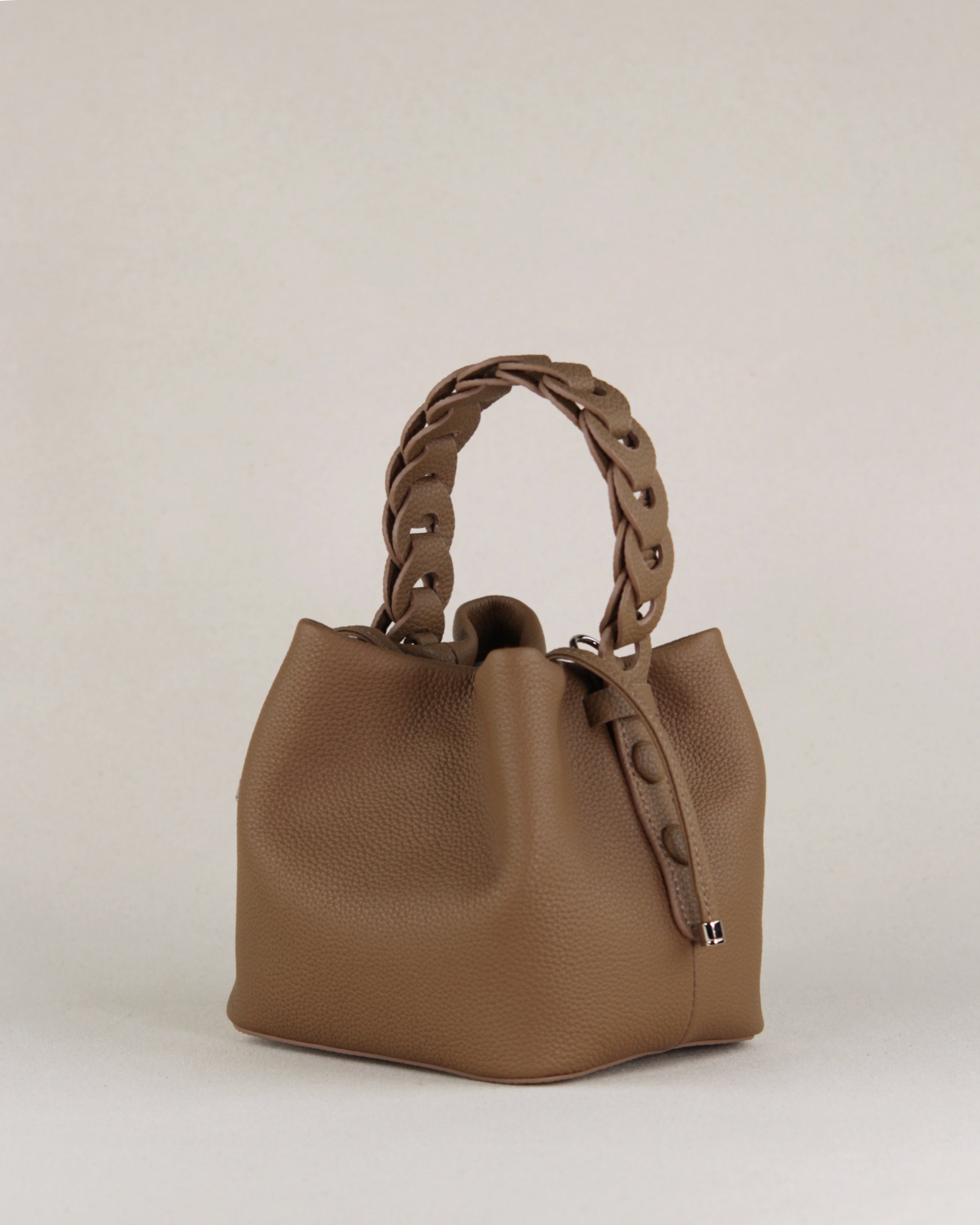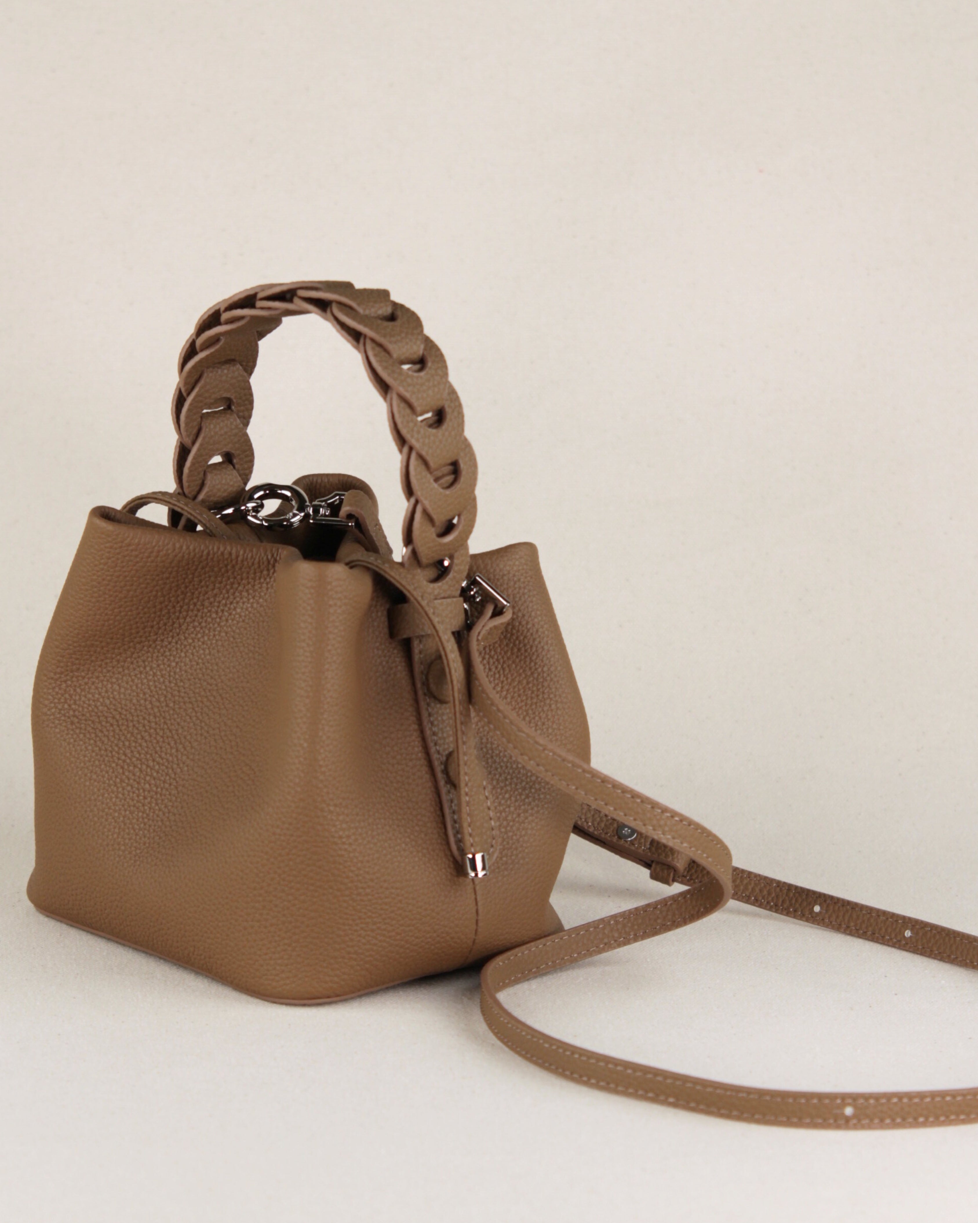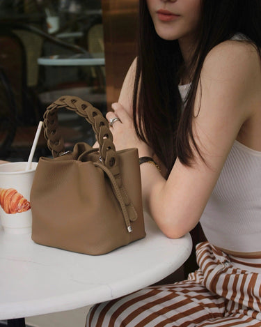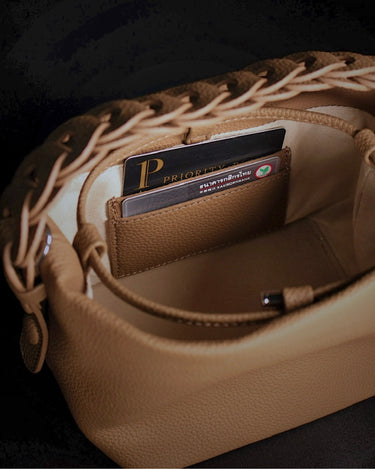 The Trenza Collection — Crafted from genuine grain cow leather, each piece is defined by its braided handle and knot-style drawstring closure—an interplay of texture and form. Inside, card compartments offer subtle function, wrapped in a silhouette that speaks softly, but with intent. Effortlessly elegant. Distinctively detailed.