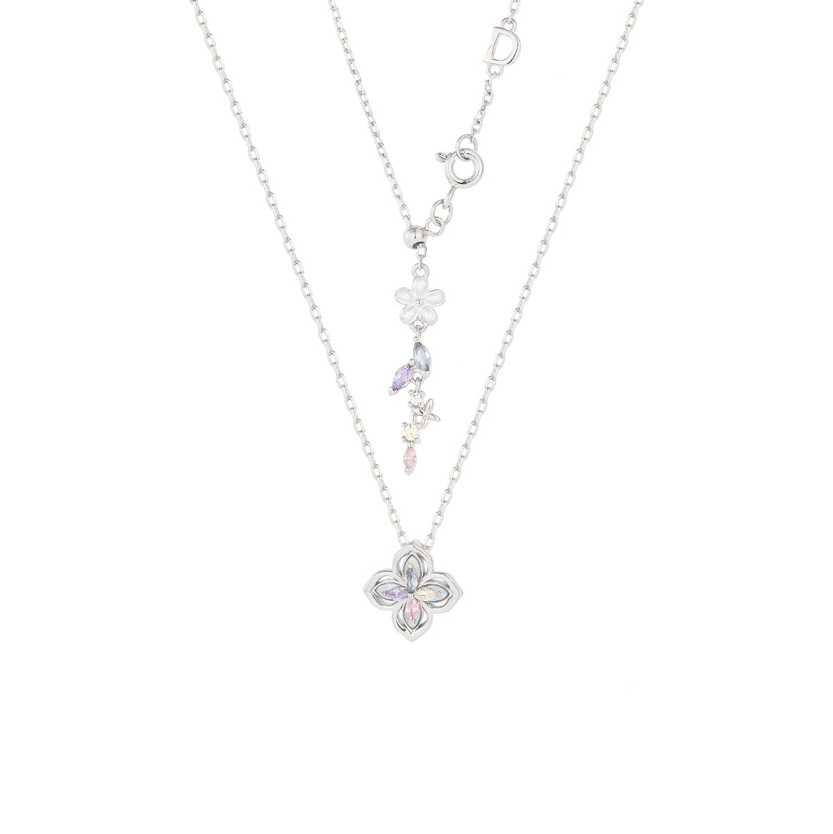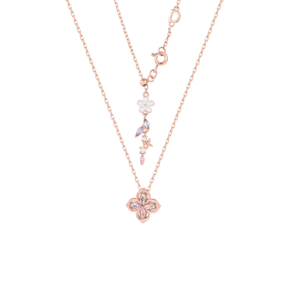 Fluttering like a whisper, the Harmony House motif rests in full bloom — its clovered silhouette reflecting the vibrant palette of Peranakan grace. The chain flows like a fine thread of silk, finishing with a subtle trail of floral accents. Intricate yet light, it is a soft tapestry of past and present, strung together in every link.