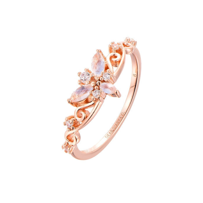 The Starling Lace ring carries the essence of your sparkling companions with you always. This ring, encrusted with radiant moonstone, is a symbol of the luminous friendships and the sparkles who have danced alongside you on life's journey.