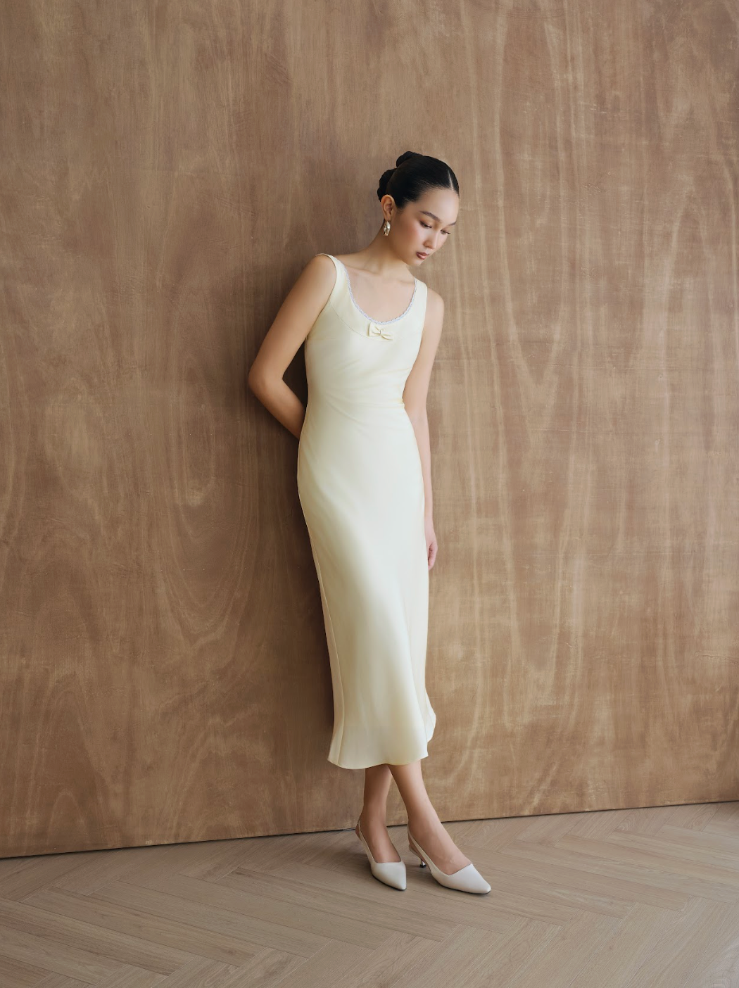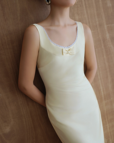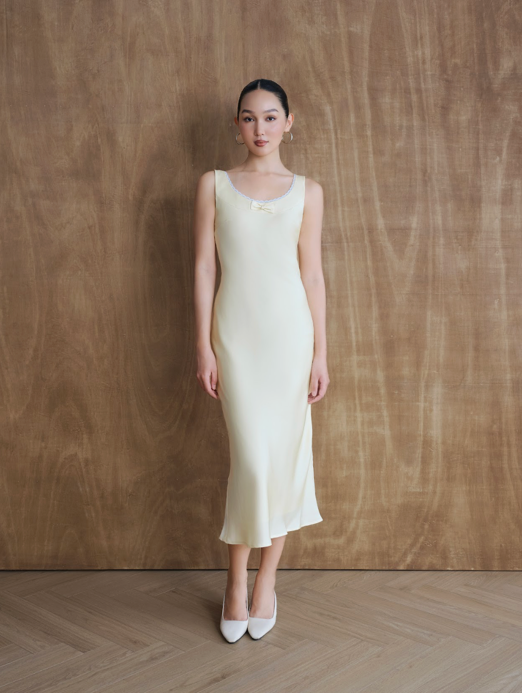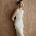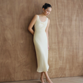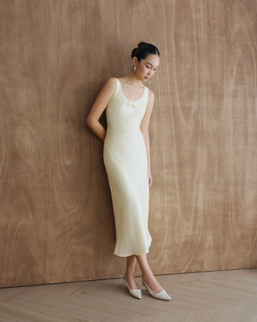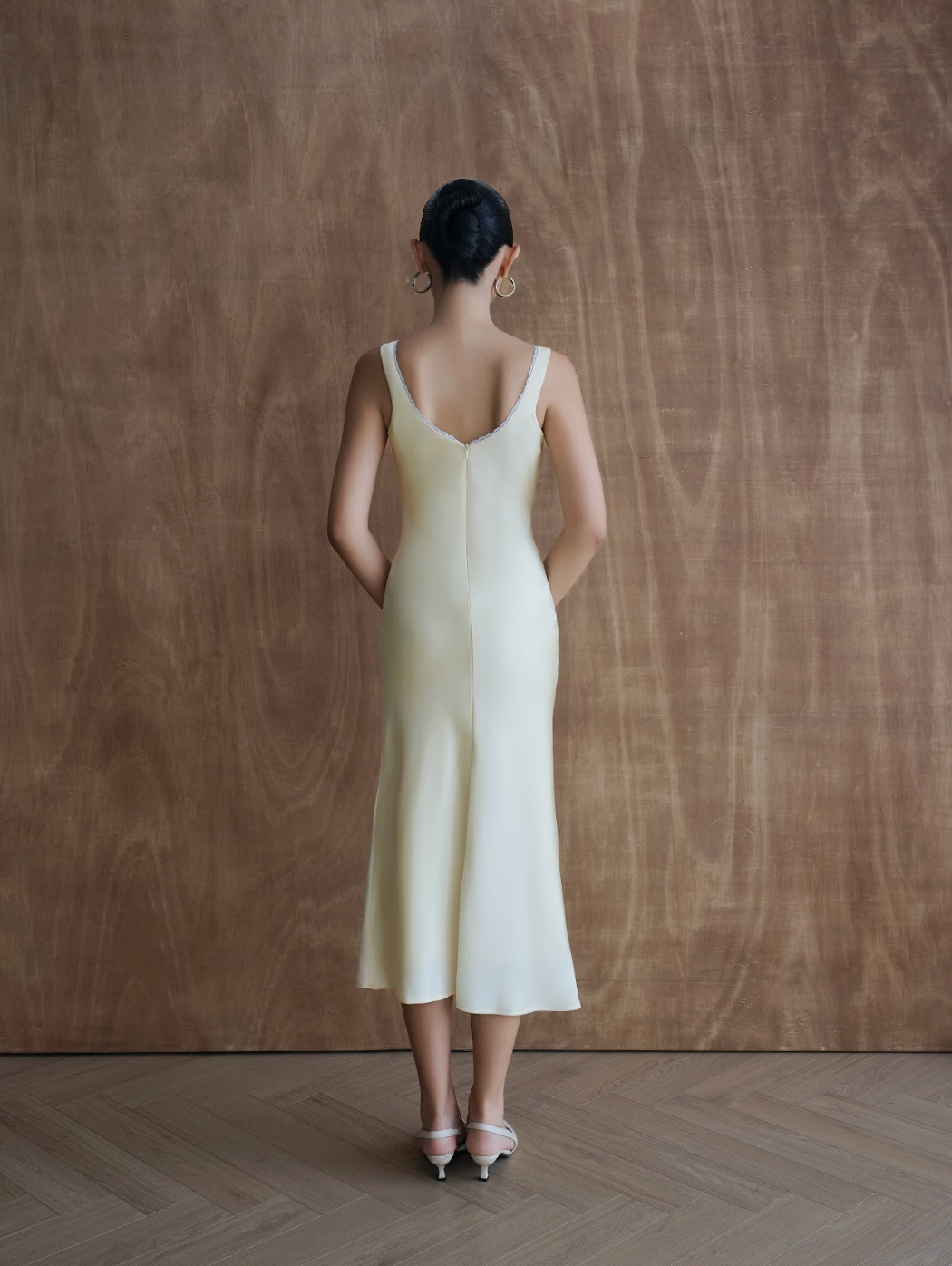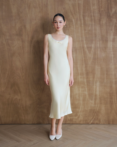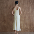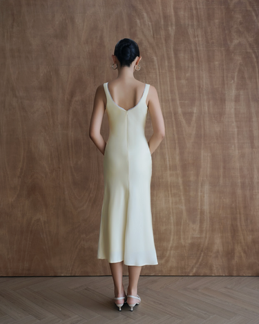 Crafted with an elegant diagonal cut for a simple design, the Butter- Silk Dresss embodies minimalist beauty in pure Italian silk. Soft, breathable, and free-flowing, this dress is designed for ease and versatility, perfect for mixing and matching with a variety of wardrobe pieces to create countless looks.
