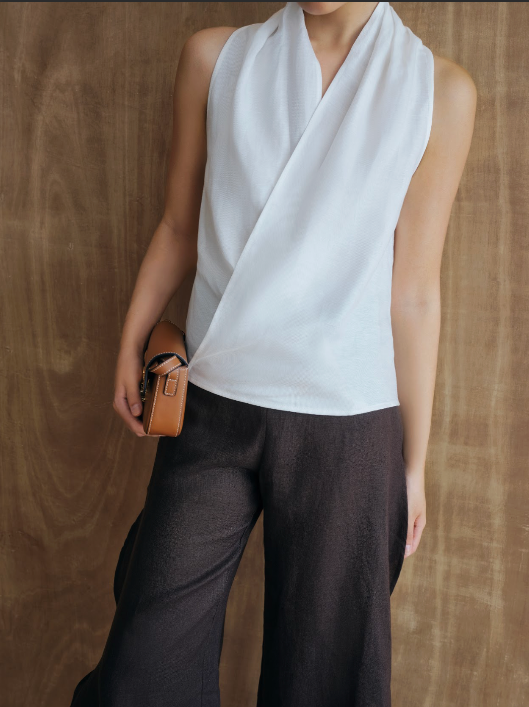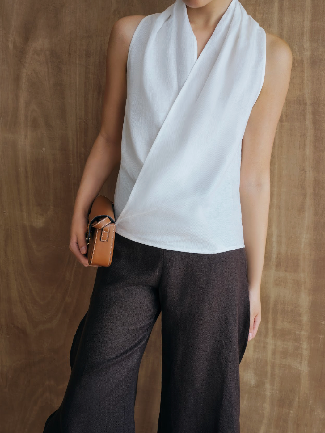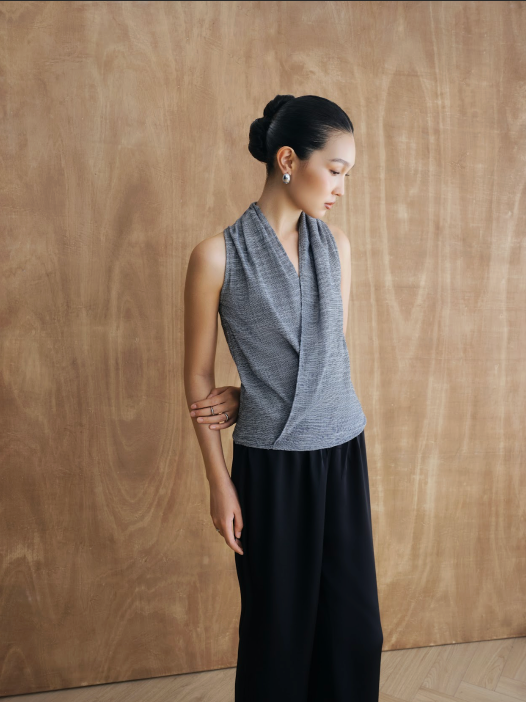 The Halter Top offers you comfort and distinctive character through its clean folds, while remaining effortlessly versatile to pair with various other items in your wardrobe.