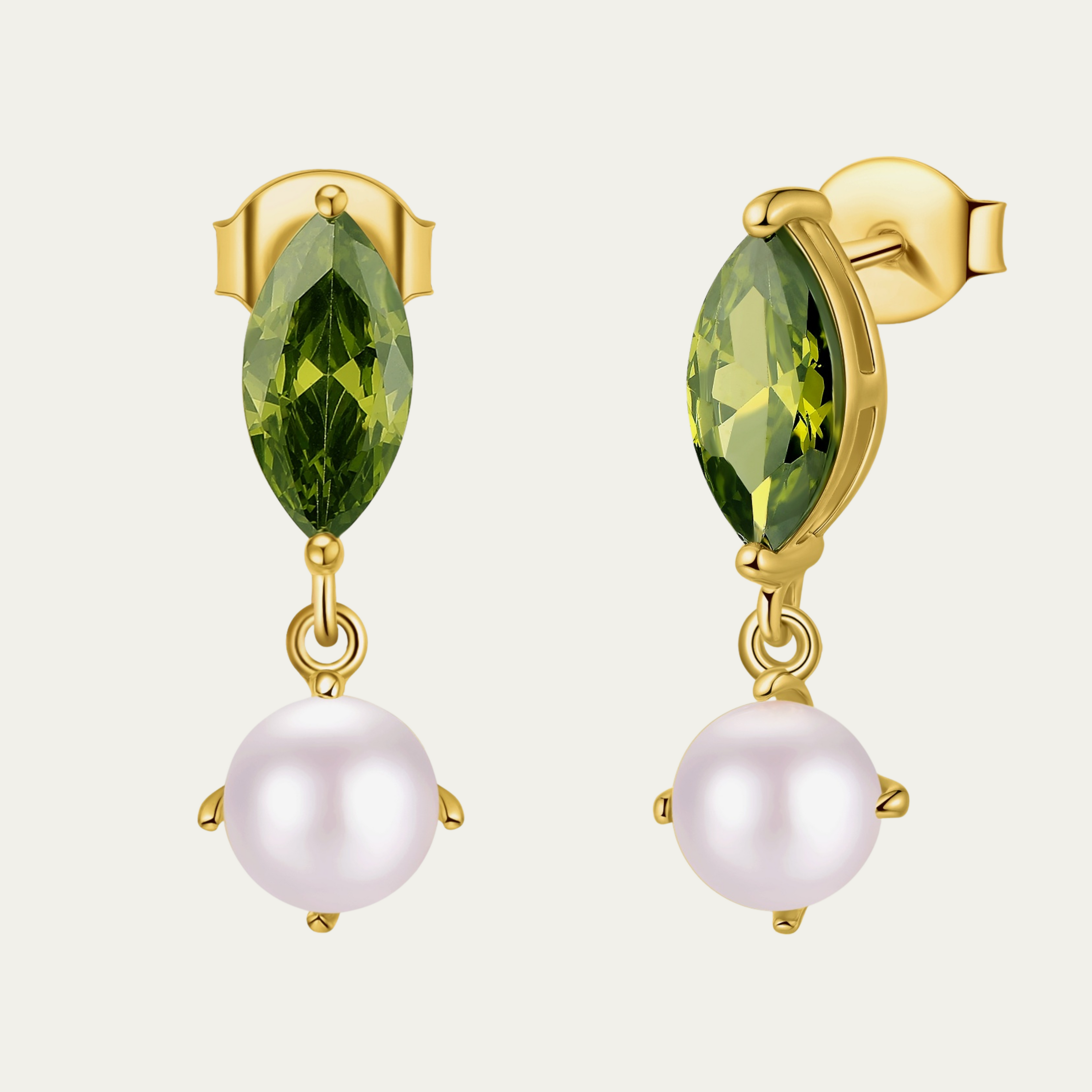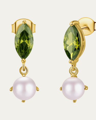 Fresh and vibrant, the Evie Drops feature AAA-grade round freshwater pearls paired with marquise-shaped peridot-colored zircons. A perfect harmony of soft glow and bold color, making them your statement piece for sunny escapes.
