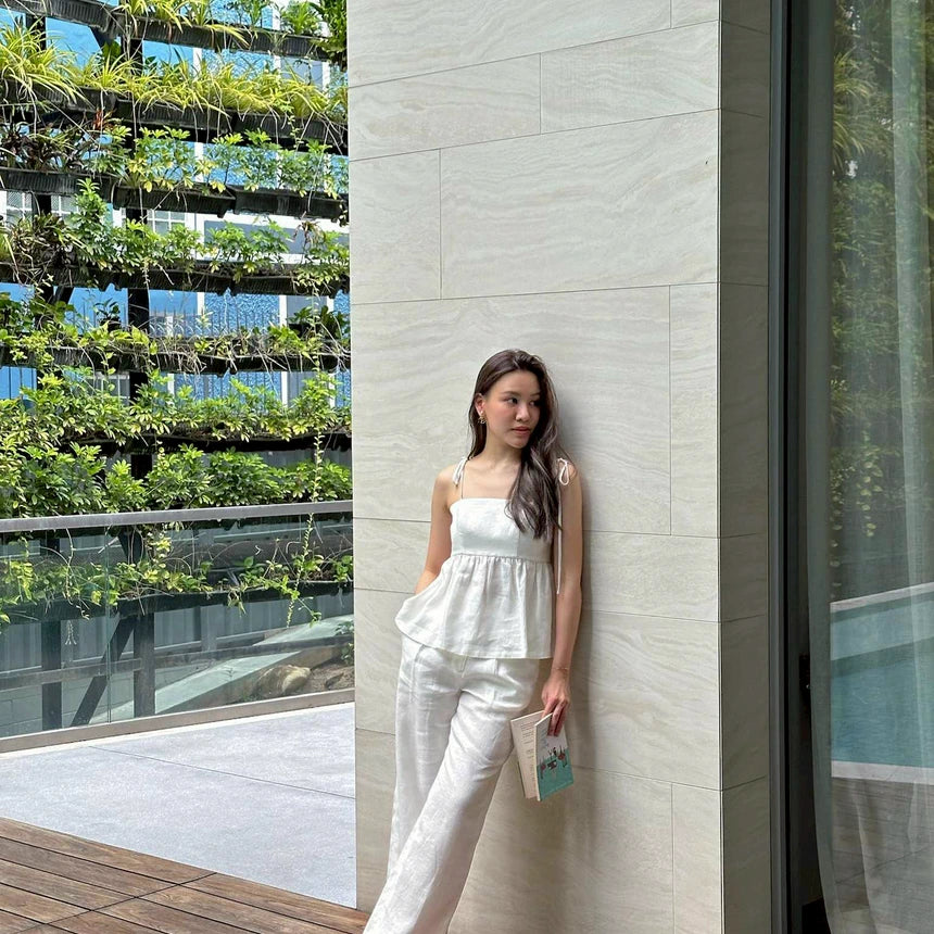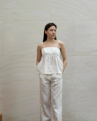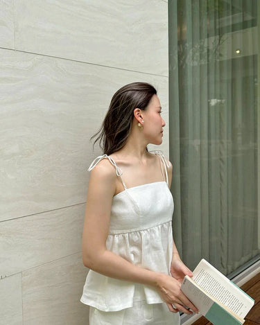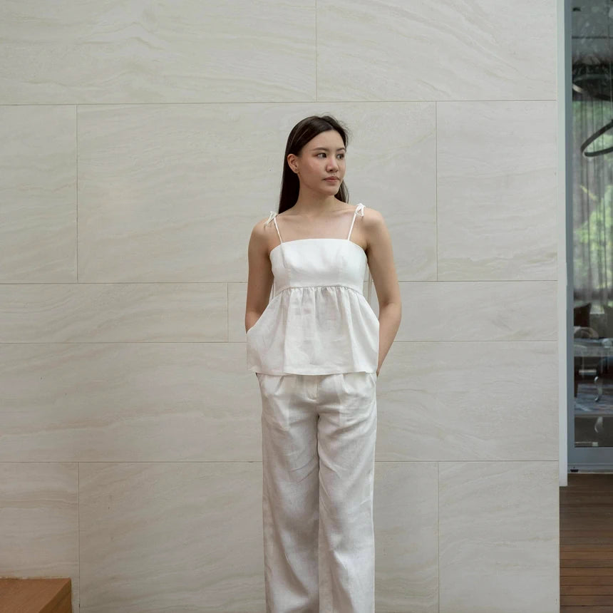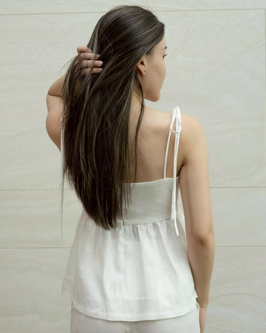 Linen top with adjustable spaghetti straps. Perfect for a chill day out. Breathable and stylish.