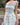 • White maxi dress with subtle blue floral pattern