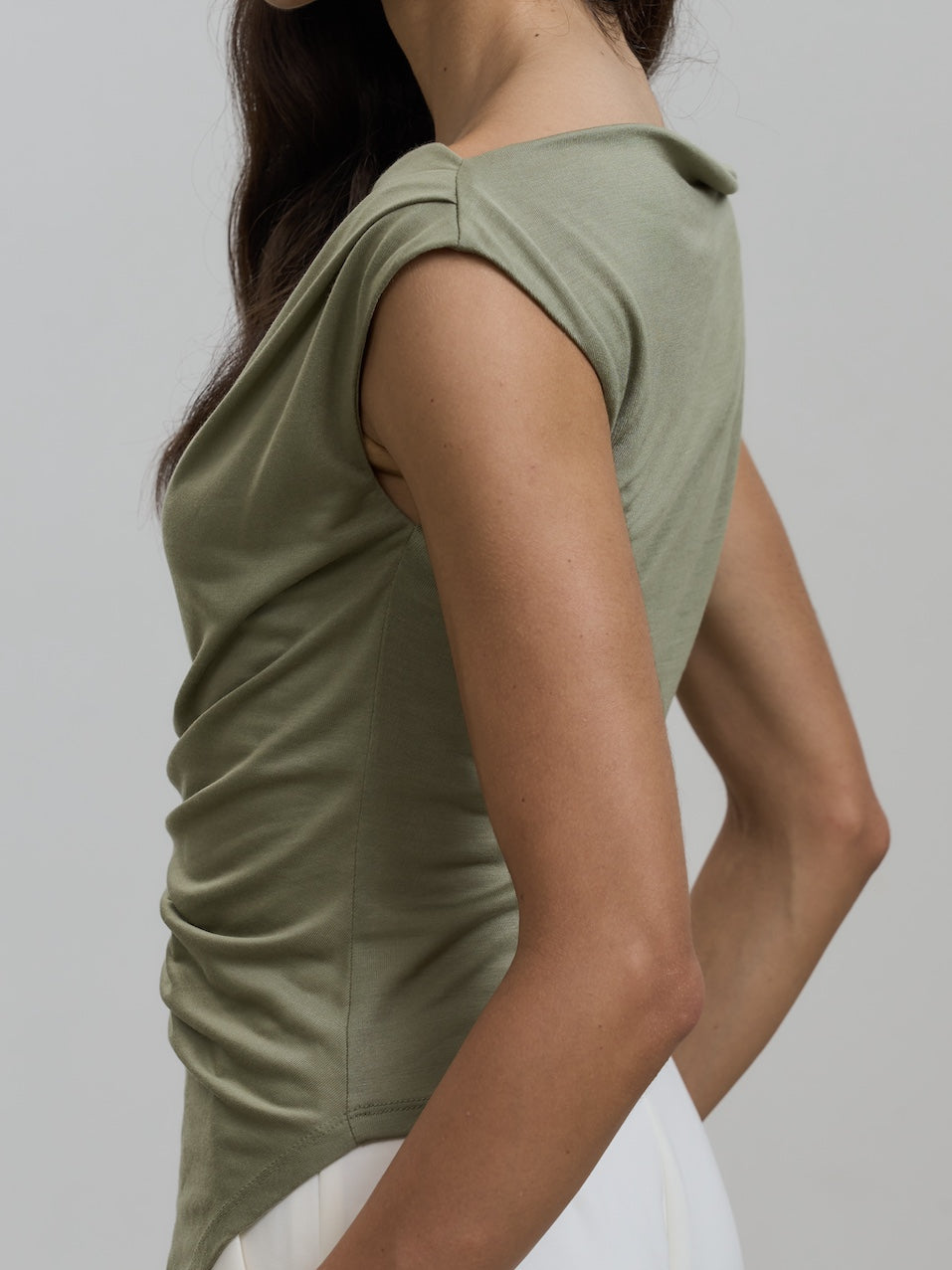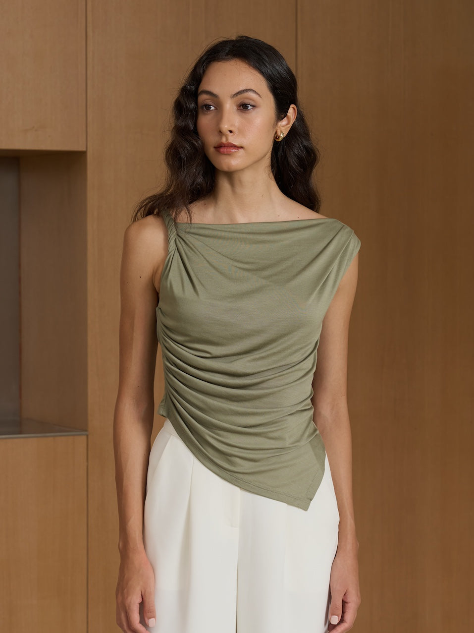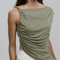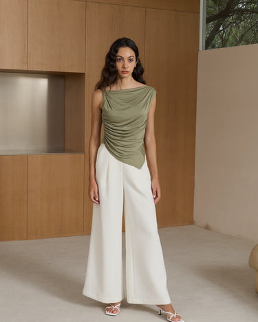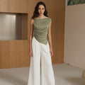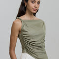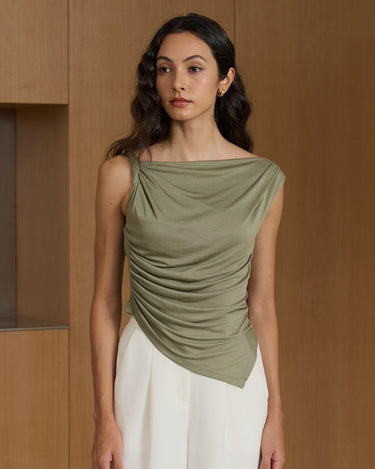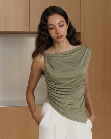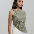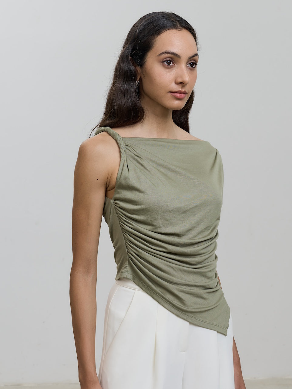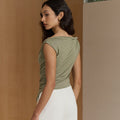 With its chic off-shoulder design and twisted knot detail, this top exudes elegance and sophistication.
