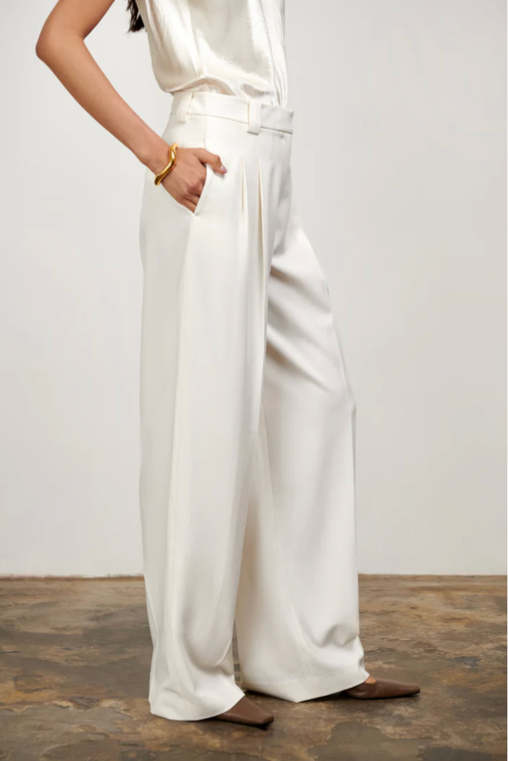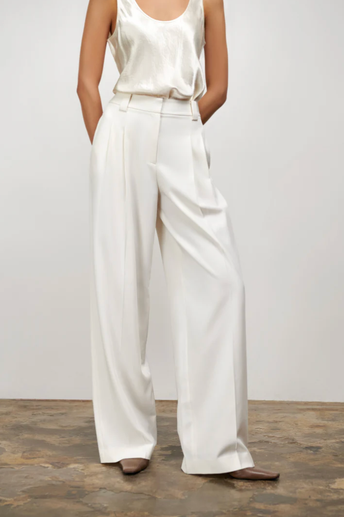 Emma Pant is that relaxed tailored pant every capsule wardrobe needs. Featuring a mid rise waist, double front pleats and wide belt loops this pant is perfect for wearing to work, on the weekend, dressing up or keeping casual. Tailored perfectly, this wide leg pant is the perfect base to any outfit.