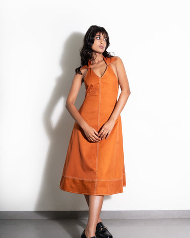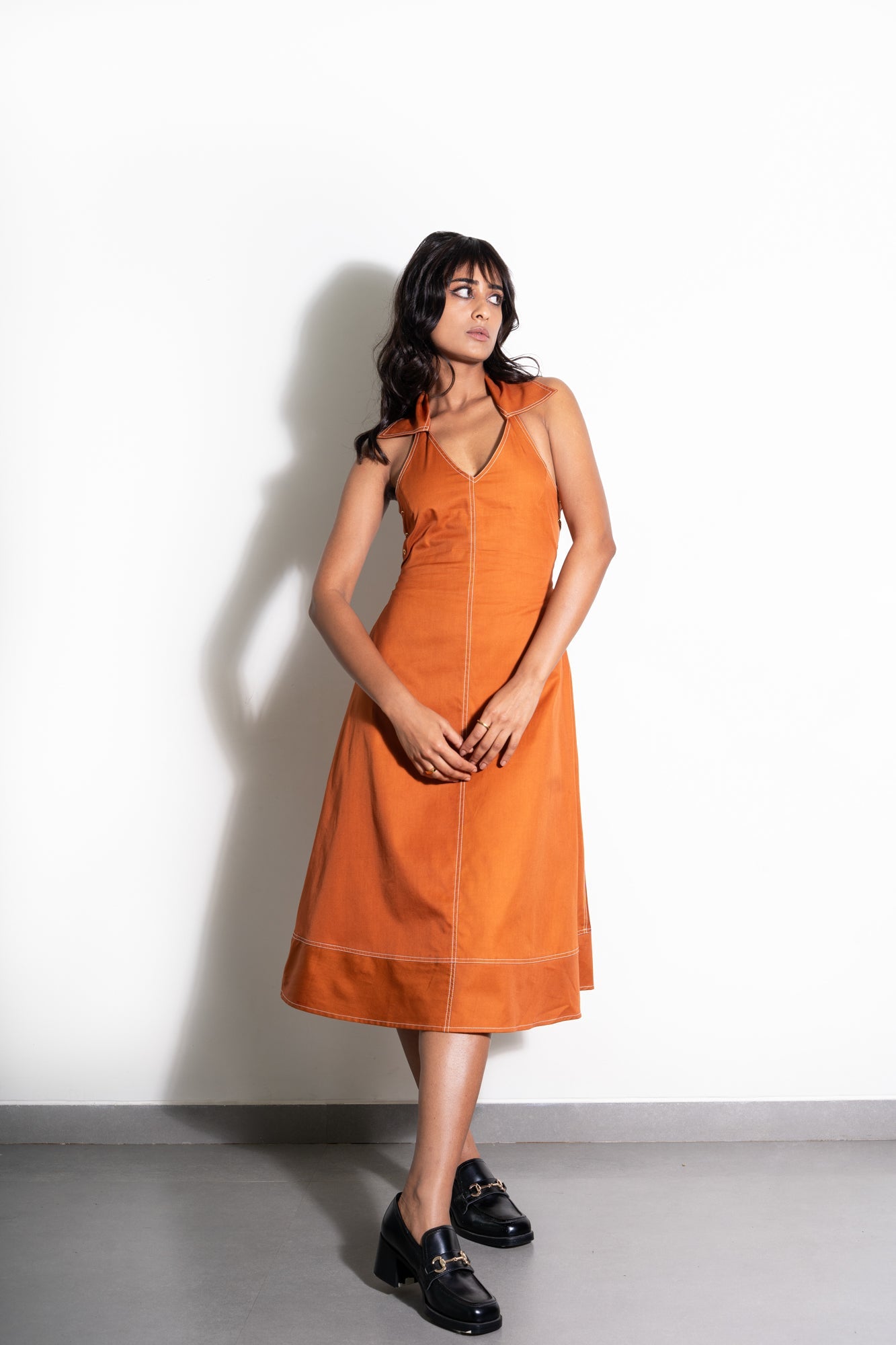The rich, burnt orange hue of this dress exudes warmth and style, making it a statement piece for any occasion. Crafted with meticulous attention to detail, the dress features a tailored silhouette with a distinctive collar, adding a touch of vintage charm. The luxurious fabric drapes gracefully, ensuring both comfort and class. Whether you wear it to a formal event or a casual outing, the "Burnt Orange Collar Dress" is a versatile addition to your wardrobe. Elevate your fashion statement with this timeless piece from our "Back to Timeless" collection and make a lasting impression wherever you go