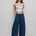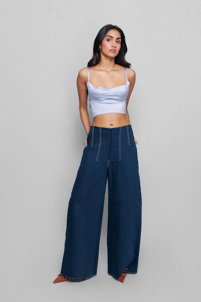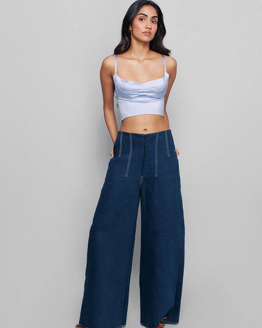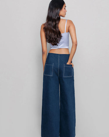 These capsule denim pants feature a comfortable fit and subtle detailing. Their simple yet stylish design makes them a wardrobe staple.