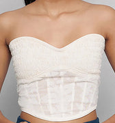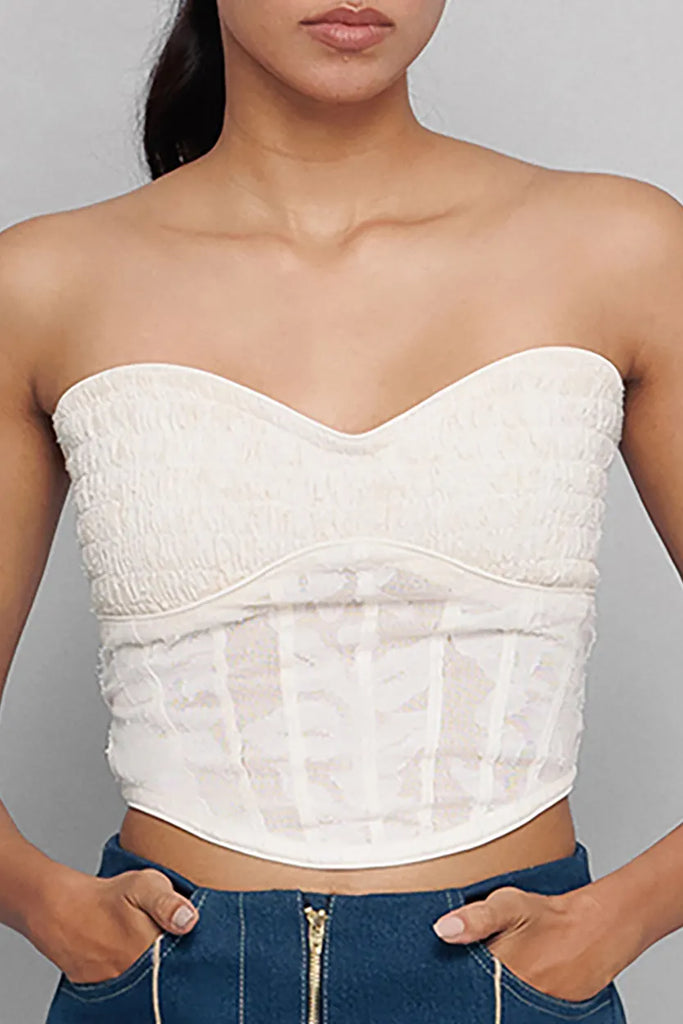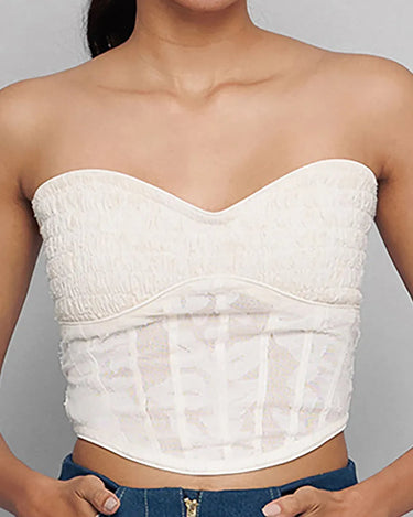 Features: Sweet heart neckline, Floral cutwork texture, statement smocking detail