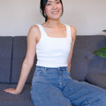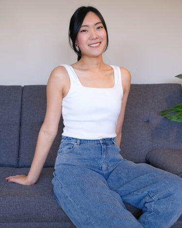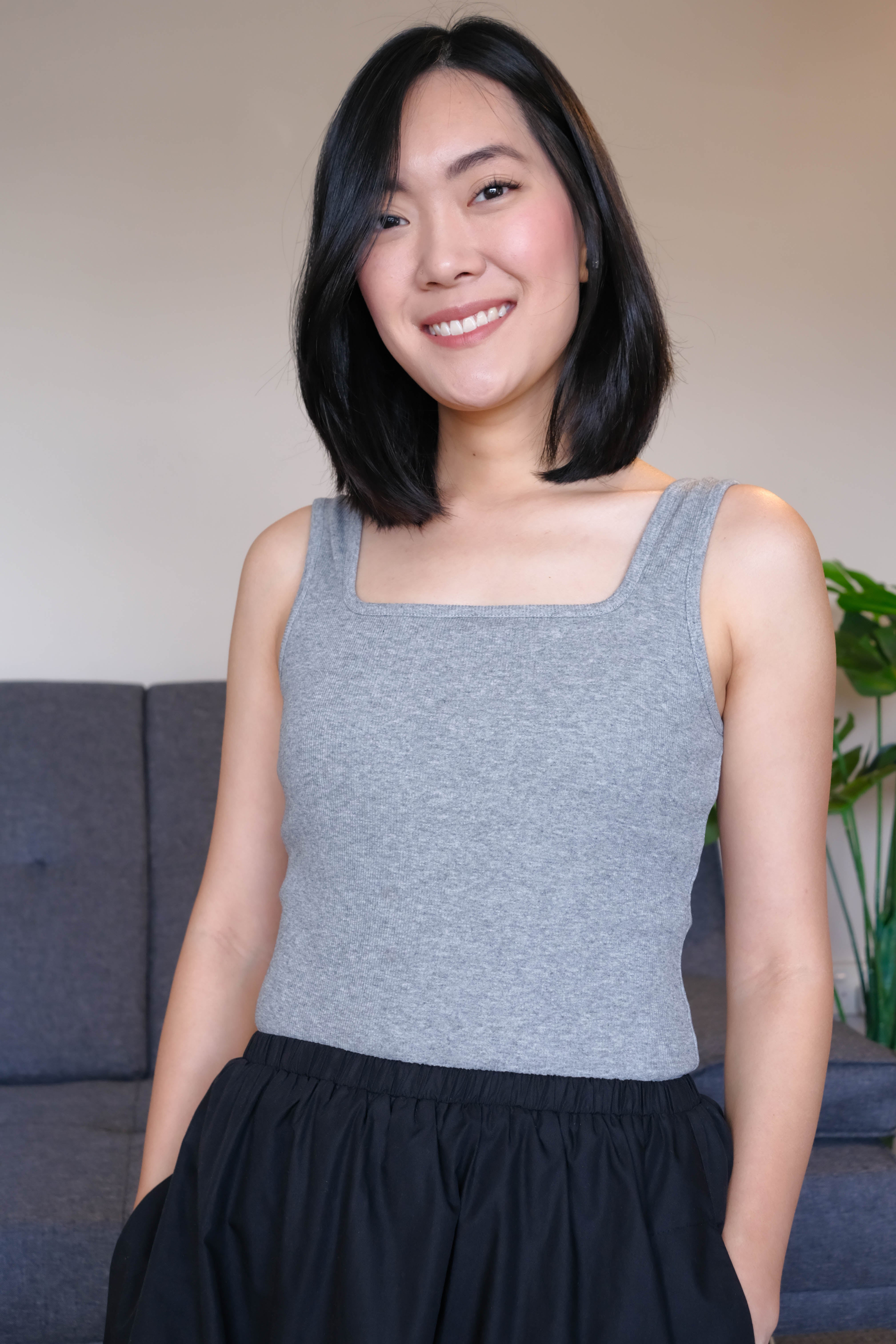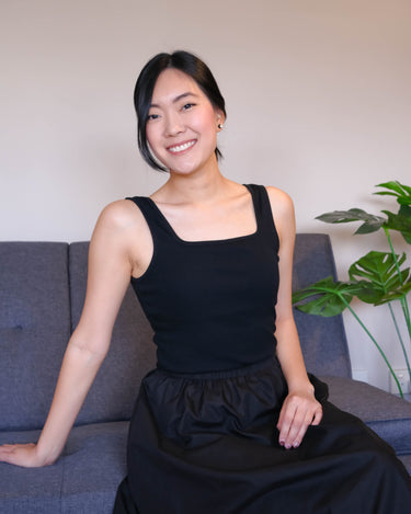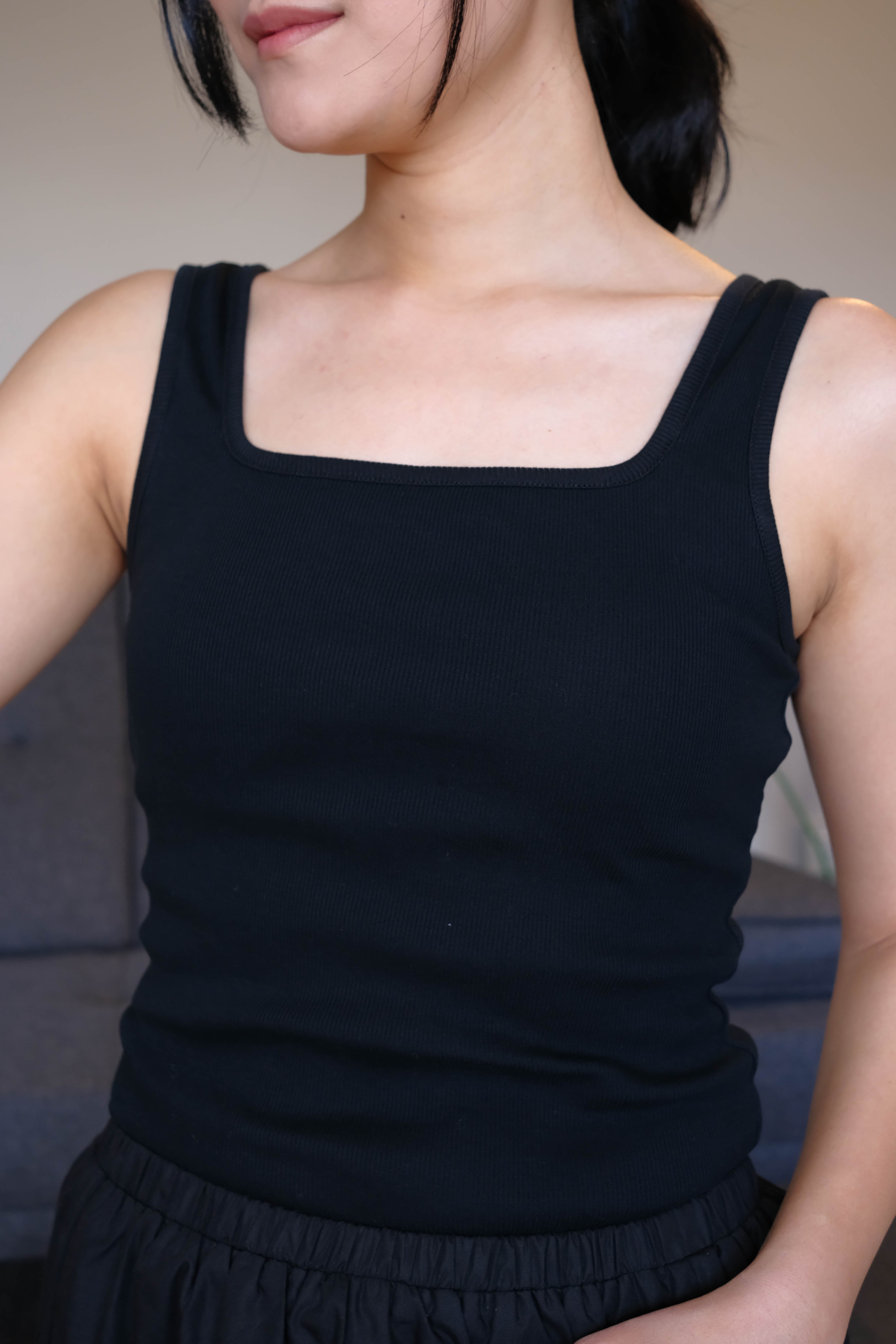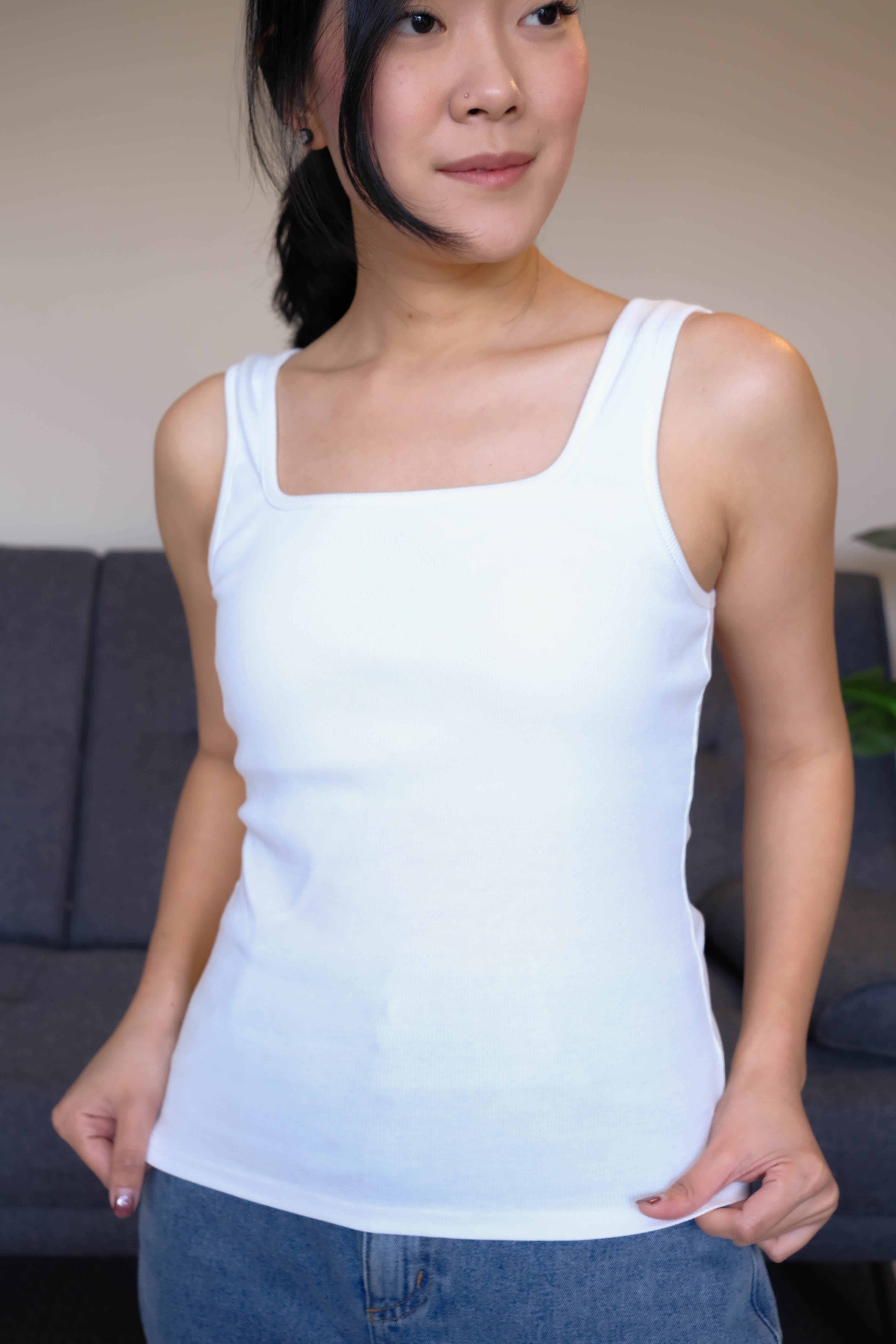 A modern essential. Our SQUARE NECK PADDED TANK is made of ribbed cotton-spandex that feels as good as it looks. Designed with a clean square neckline and a smooth, sculpting silhouette, it pairs seamlessly with everything from tailored trousers to off-duty denim.