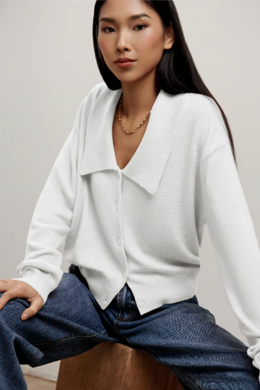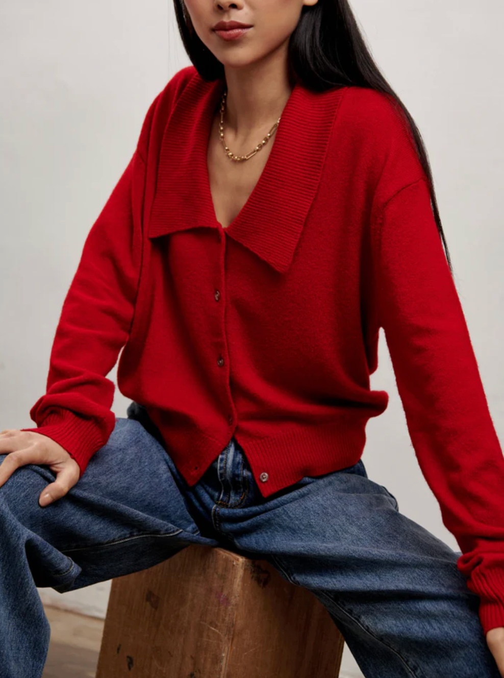 The Chloe is the perfect cardigan to add to your wardrobe. With an easy loose fit and wide collar detail it can be worn as cardigan thrown over your shoulders or as a top with your favorite pair of jeans. A flattering style that is versatile to wear to work or on a casual weekend, with a fun pop of color!