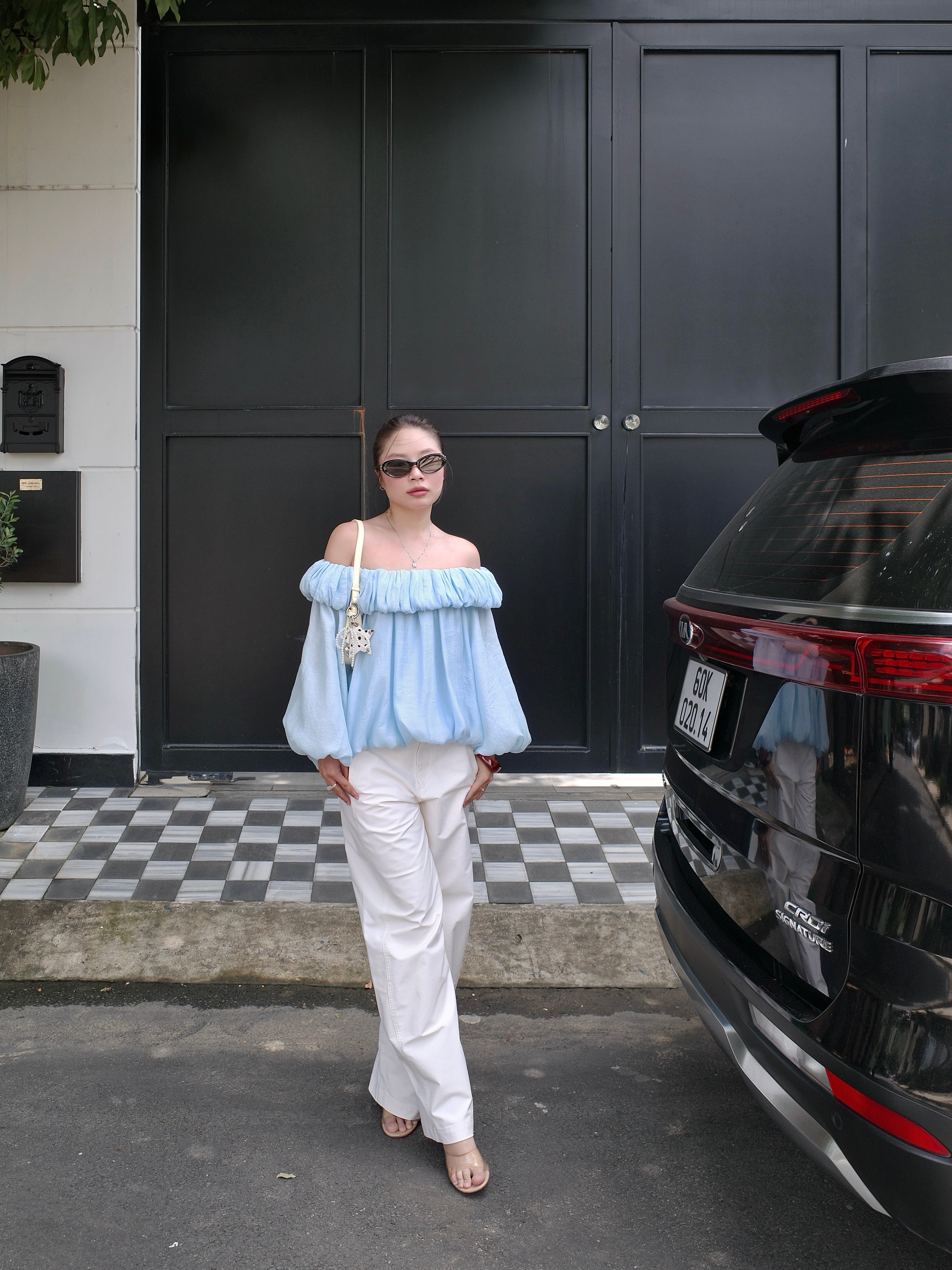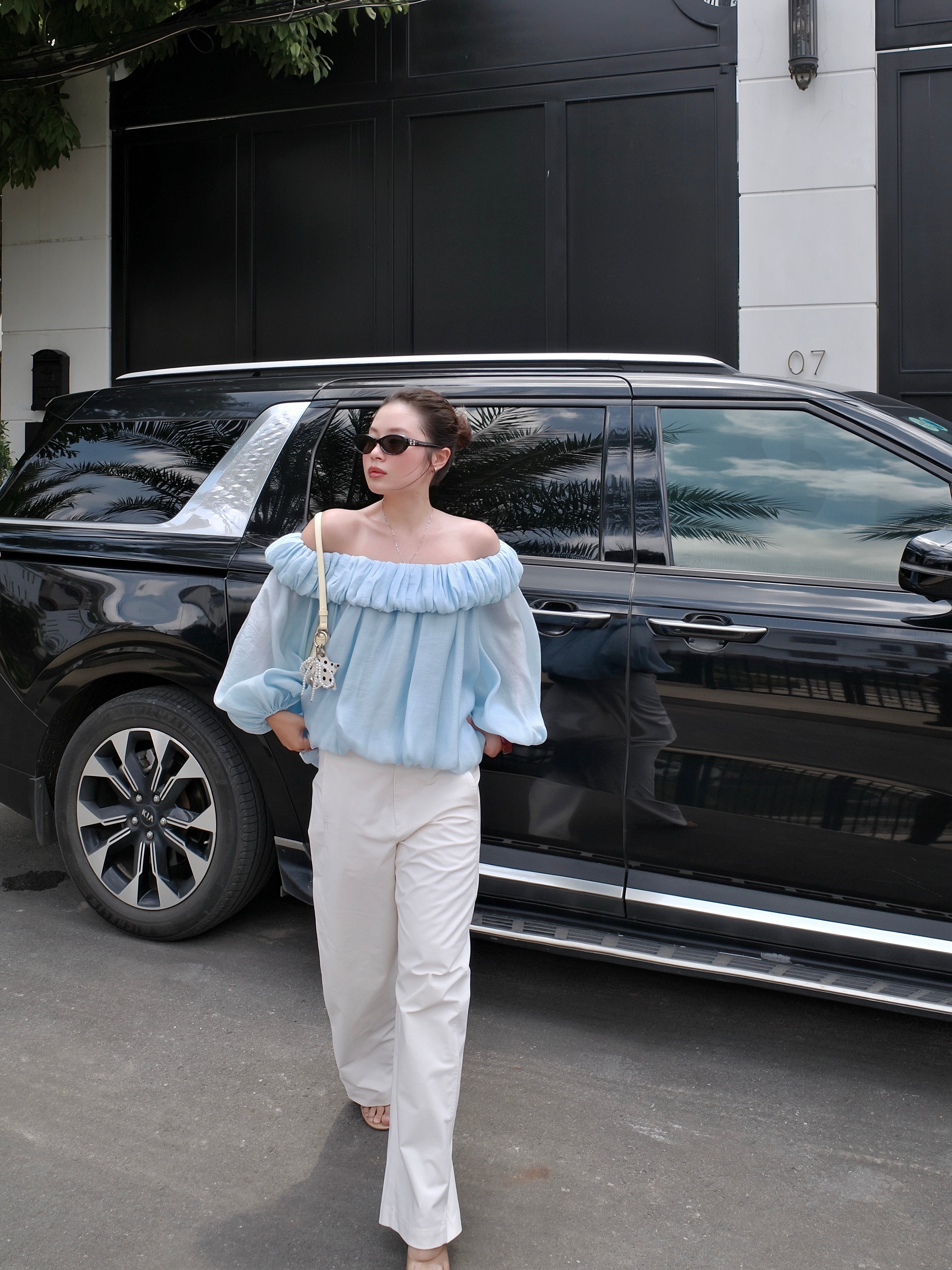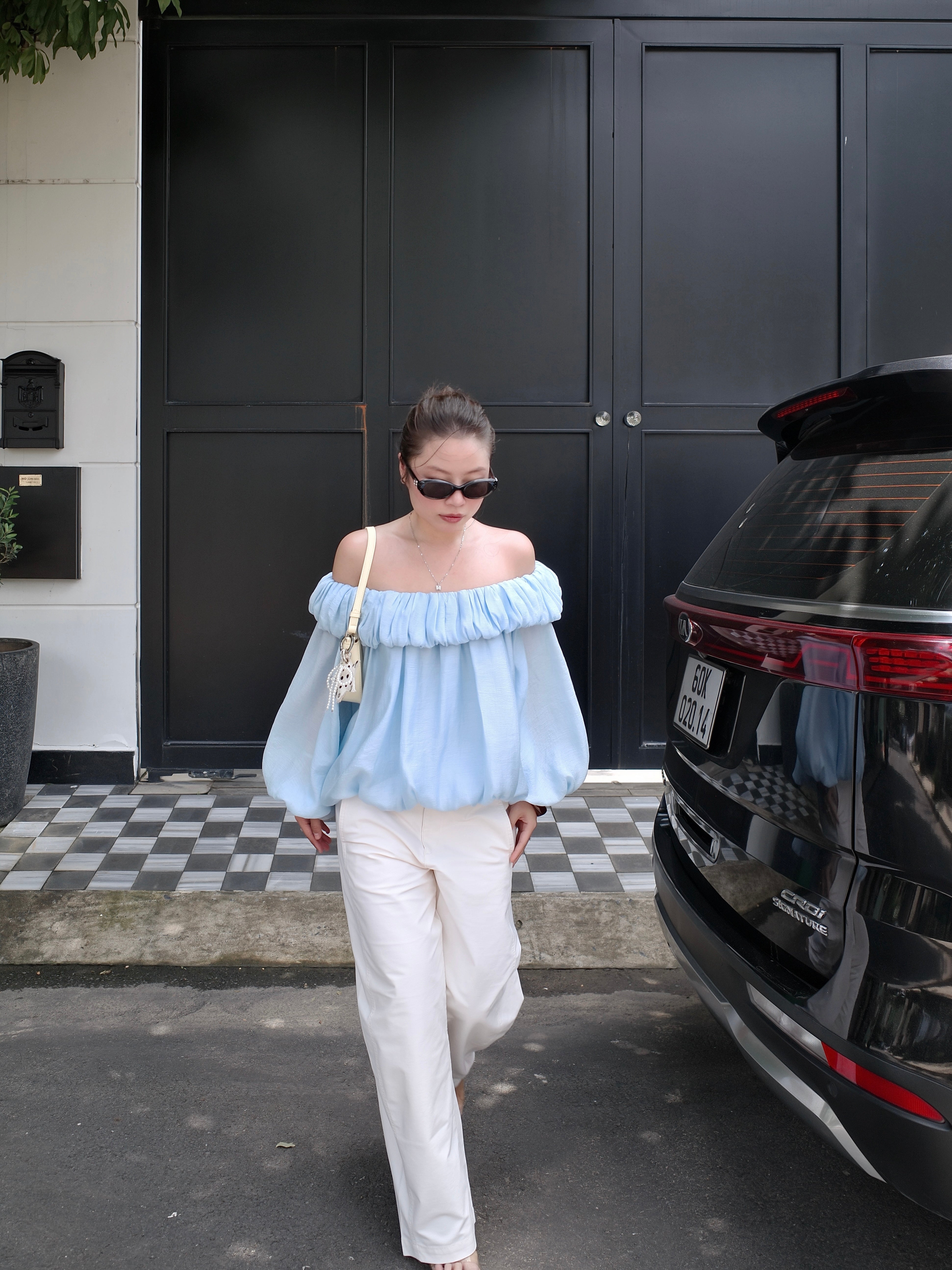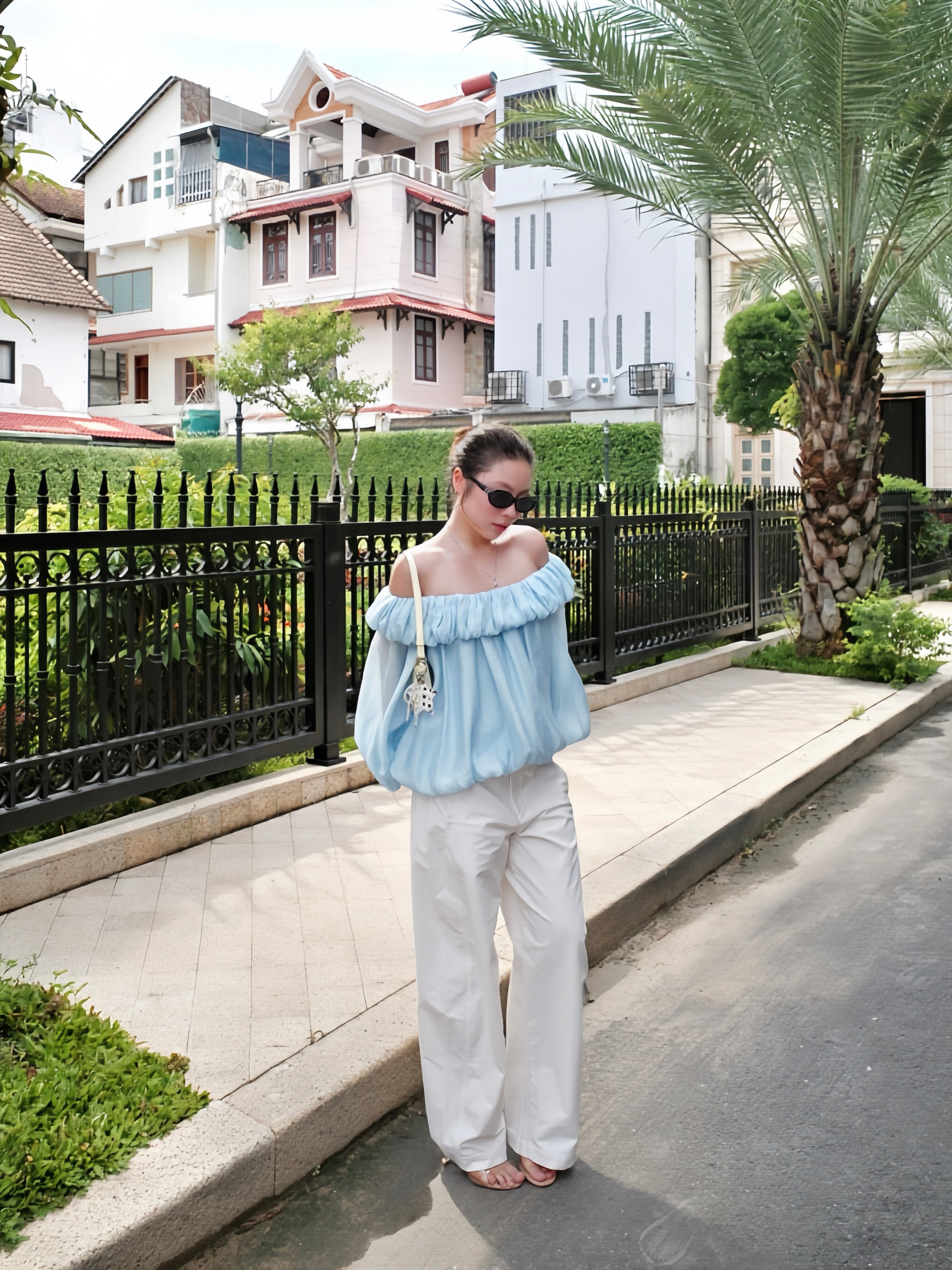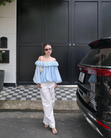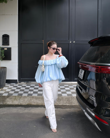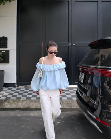Light as air and effortlessly romantic, the Cloudy Off-Shoulder Top brings a dreamy feel to any look. With its cloud-like texture and gentle drape, the off-shoulder neckline beautifully frames the collarbones while adding a soft, feminine touch.