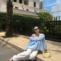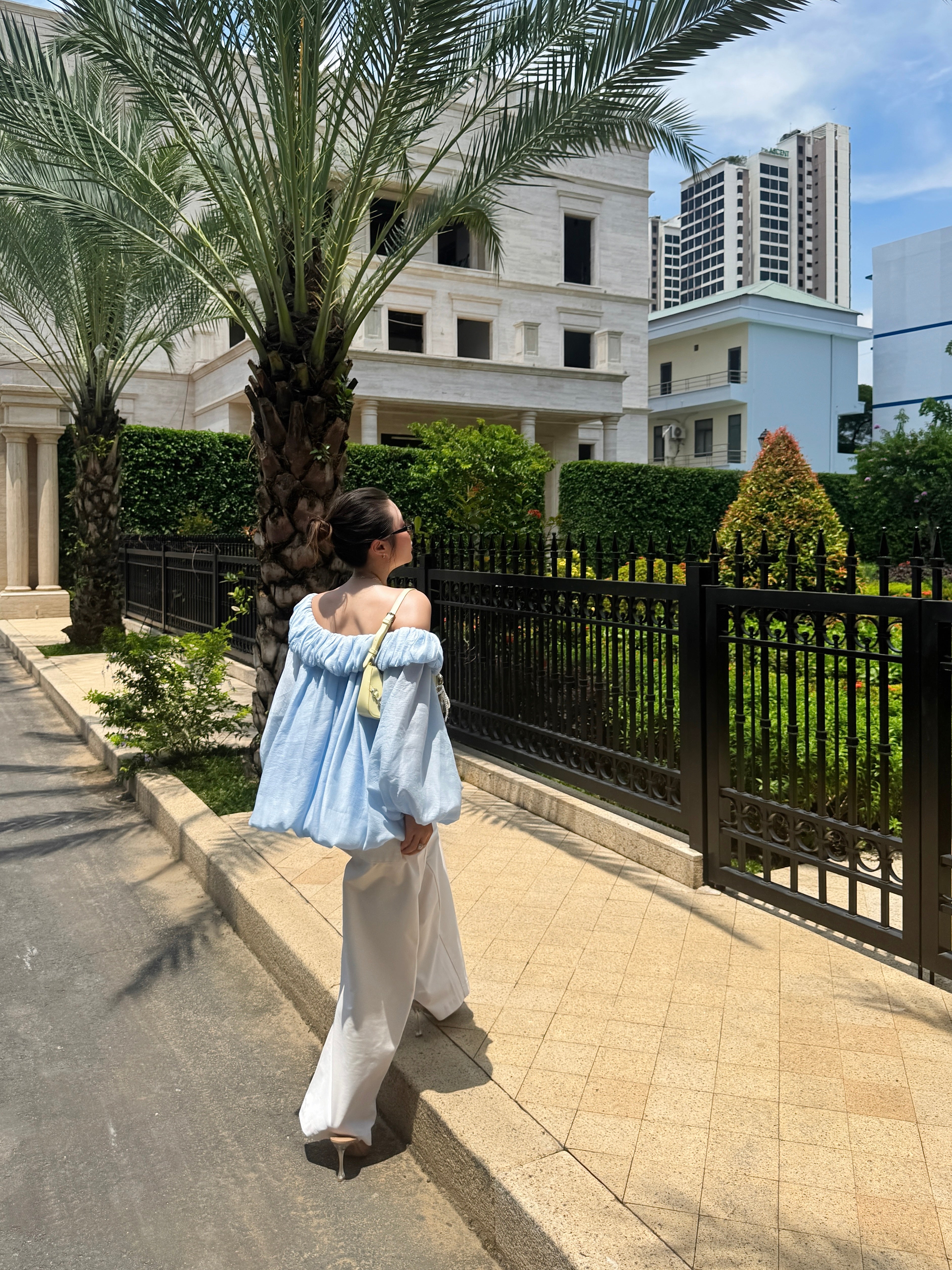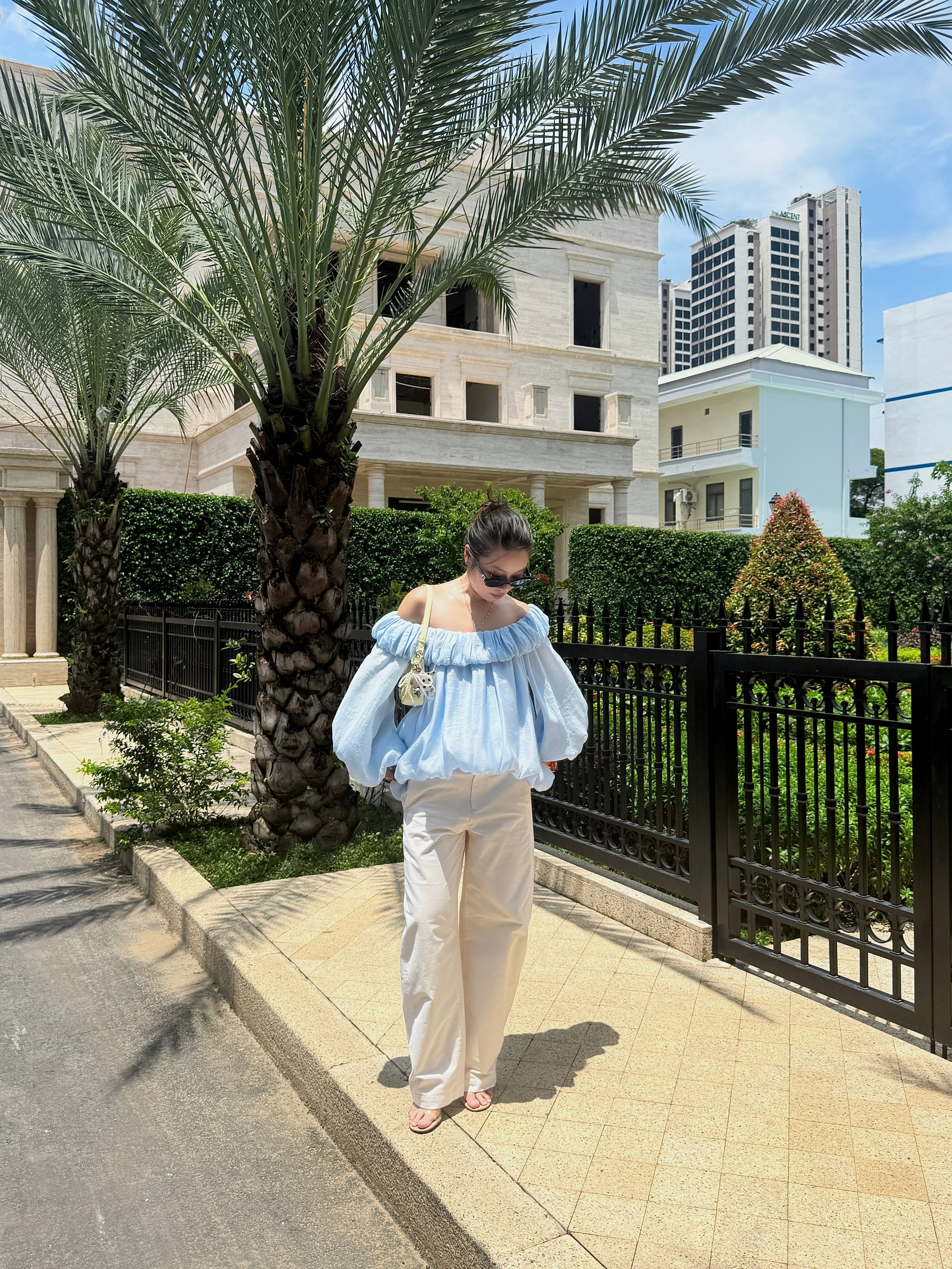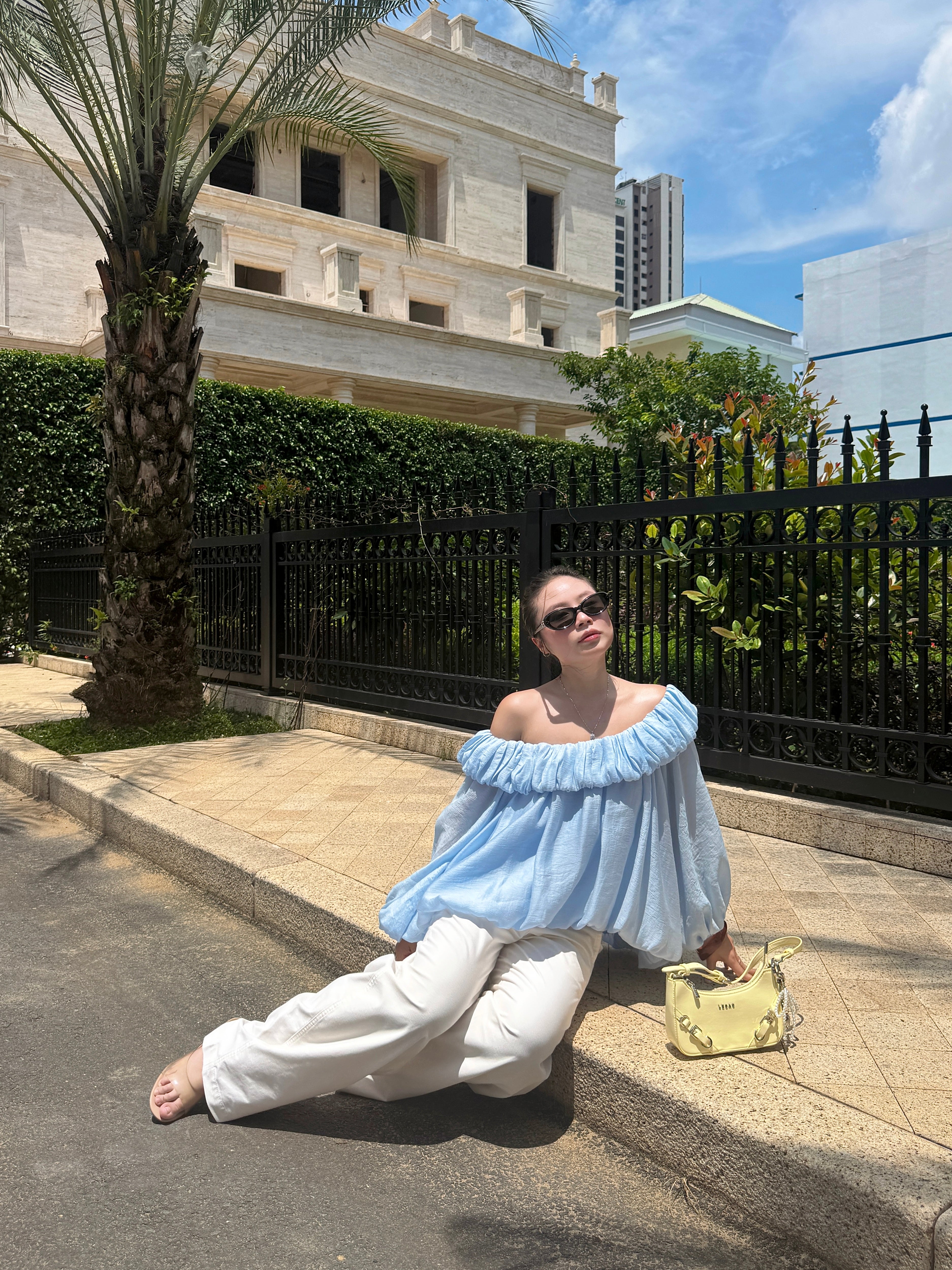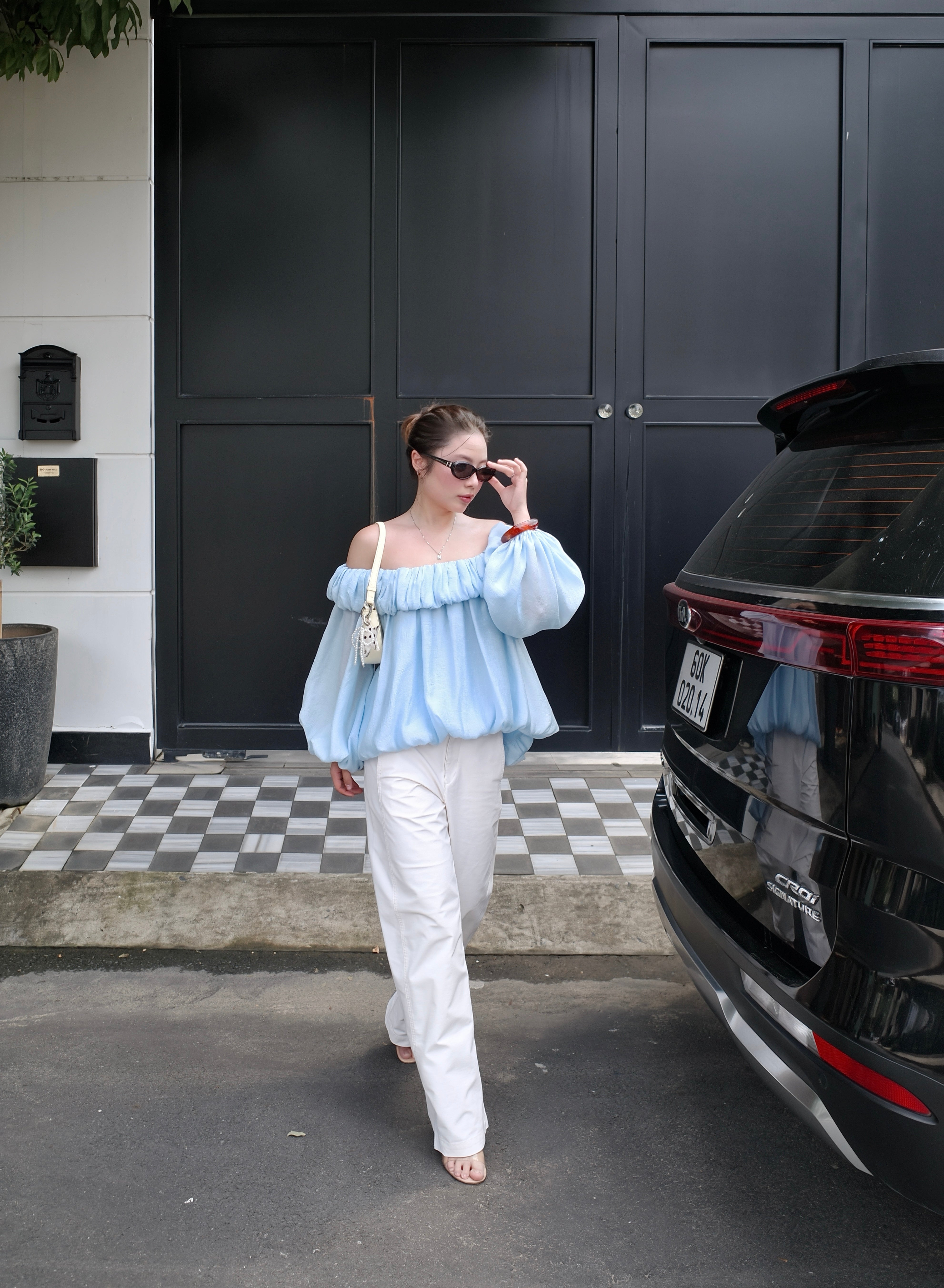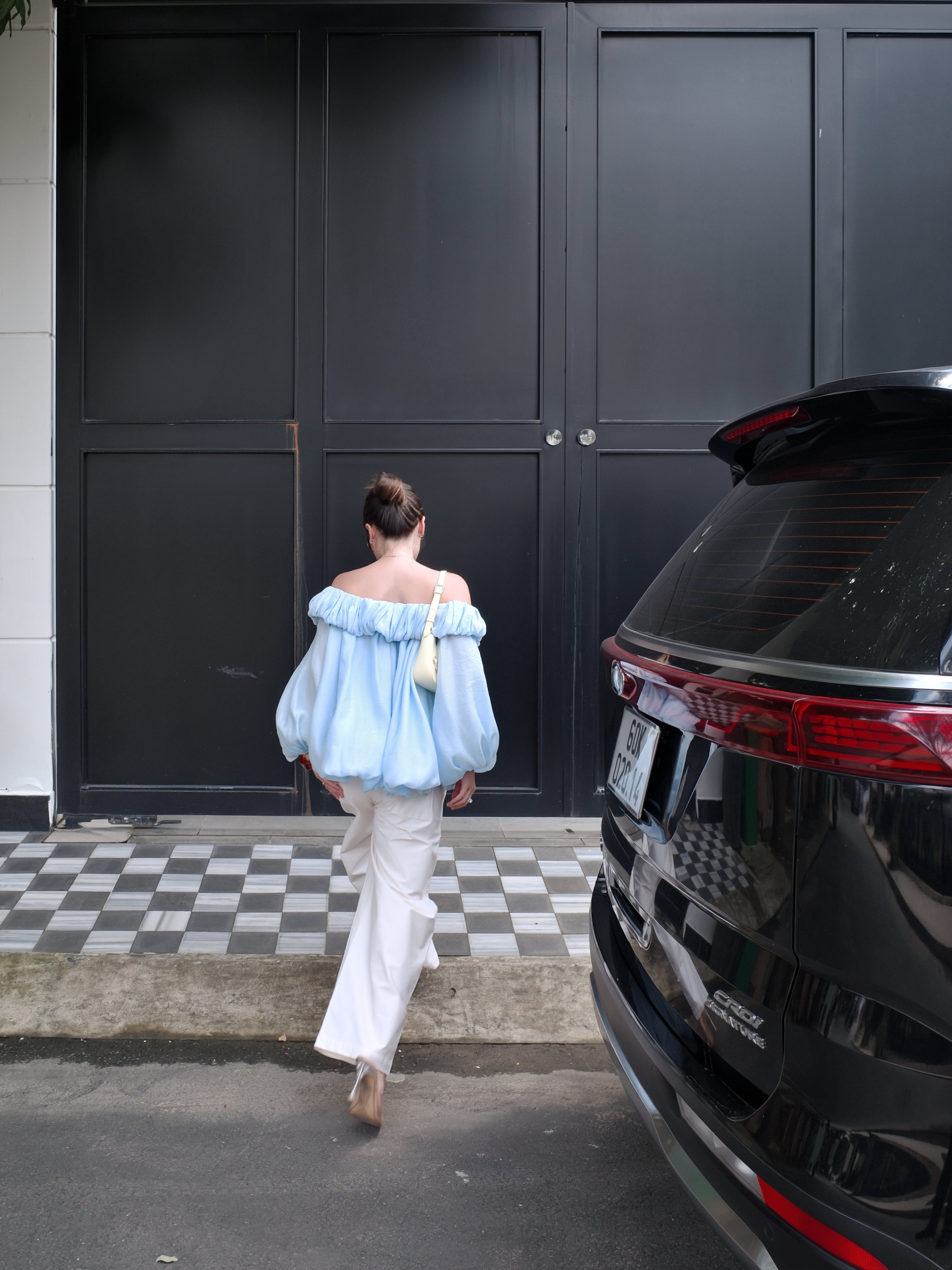 Light as air and effortlessly romantic, the Cloudy Off-Shoulder Top brings a dreamy feel to any look. With its cloud-like texture and gentle drape, the off-shoulder neckline beautifully frames the collarbones while adding a soft, feminine touch.
