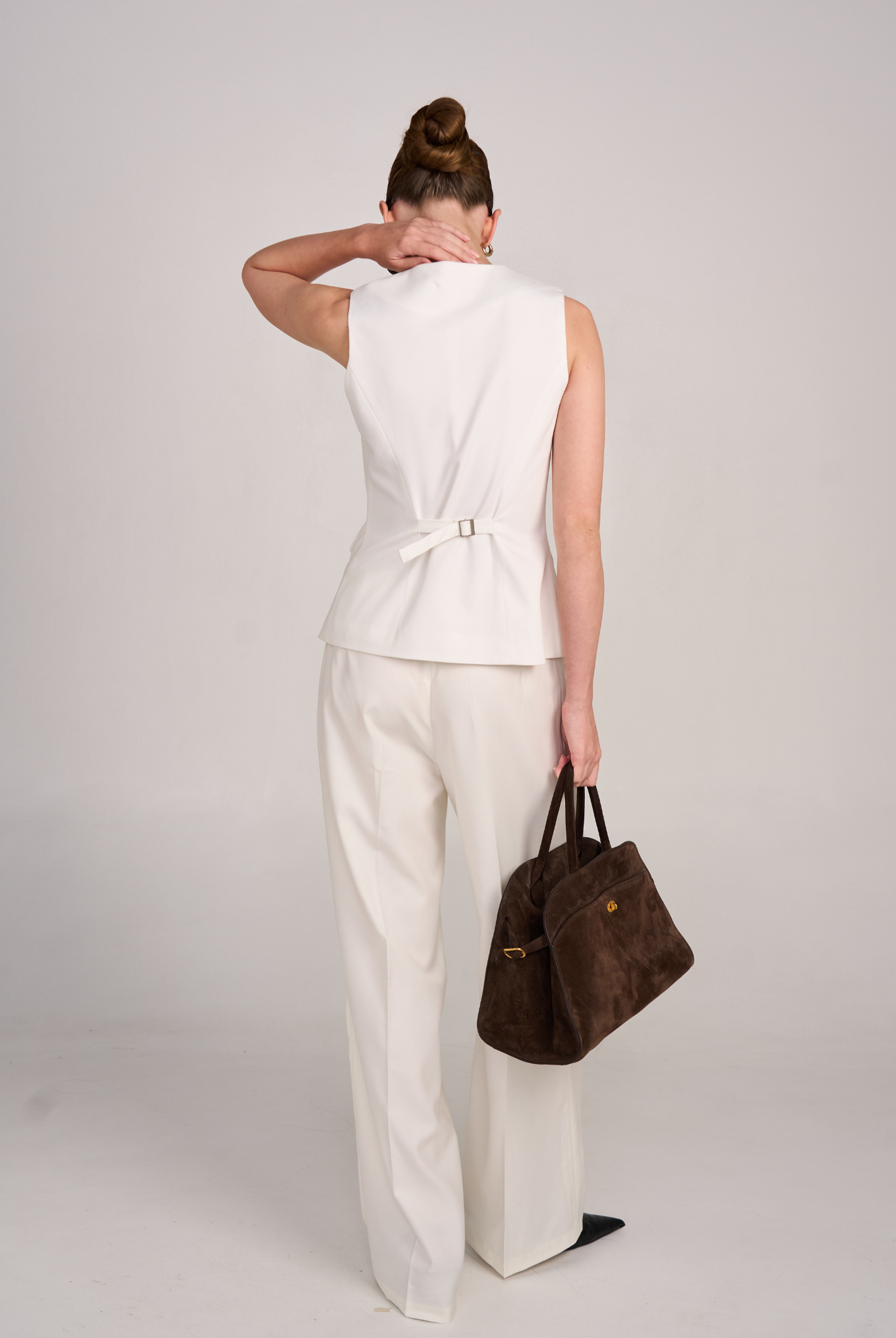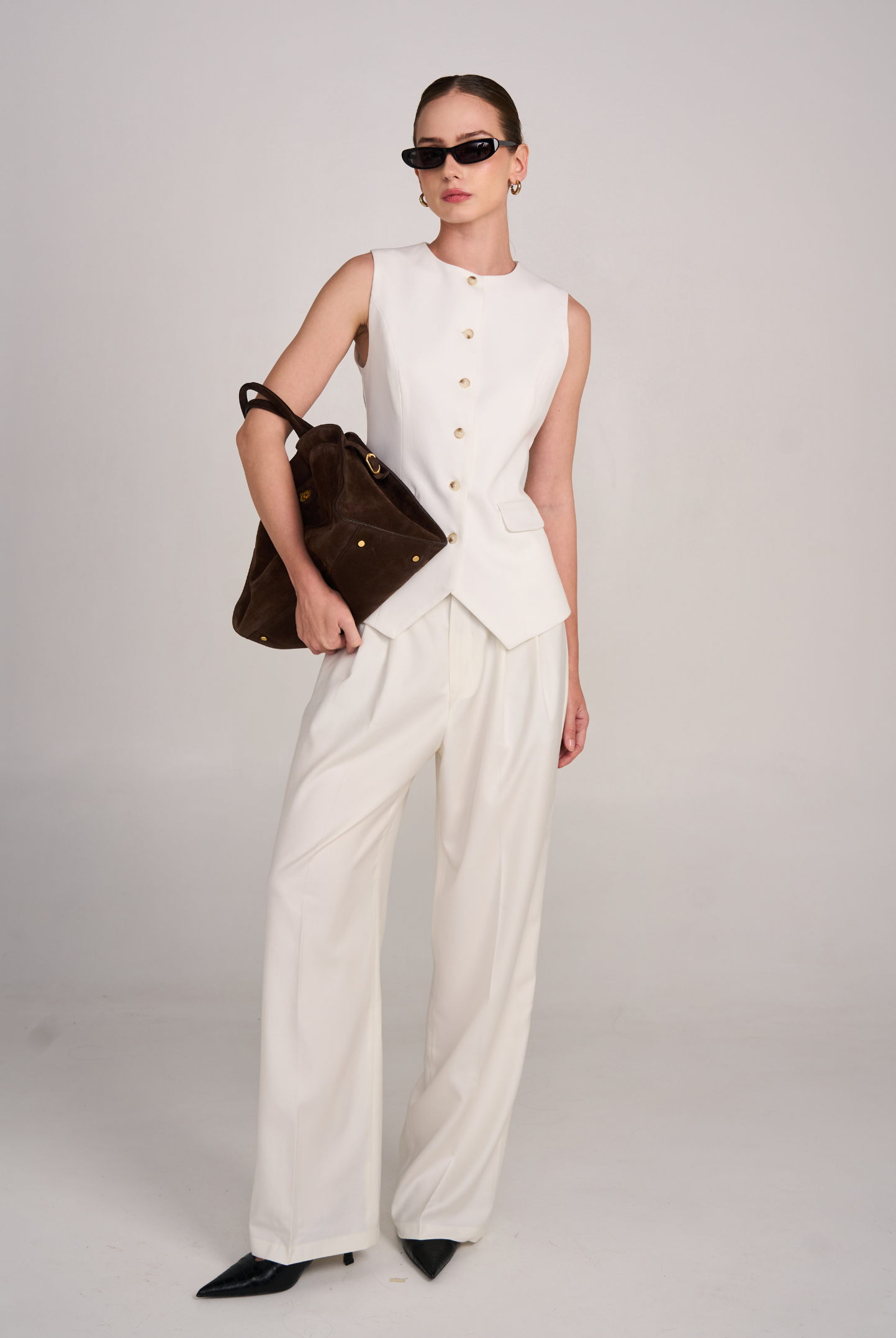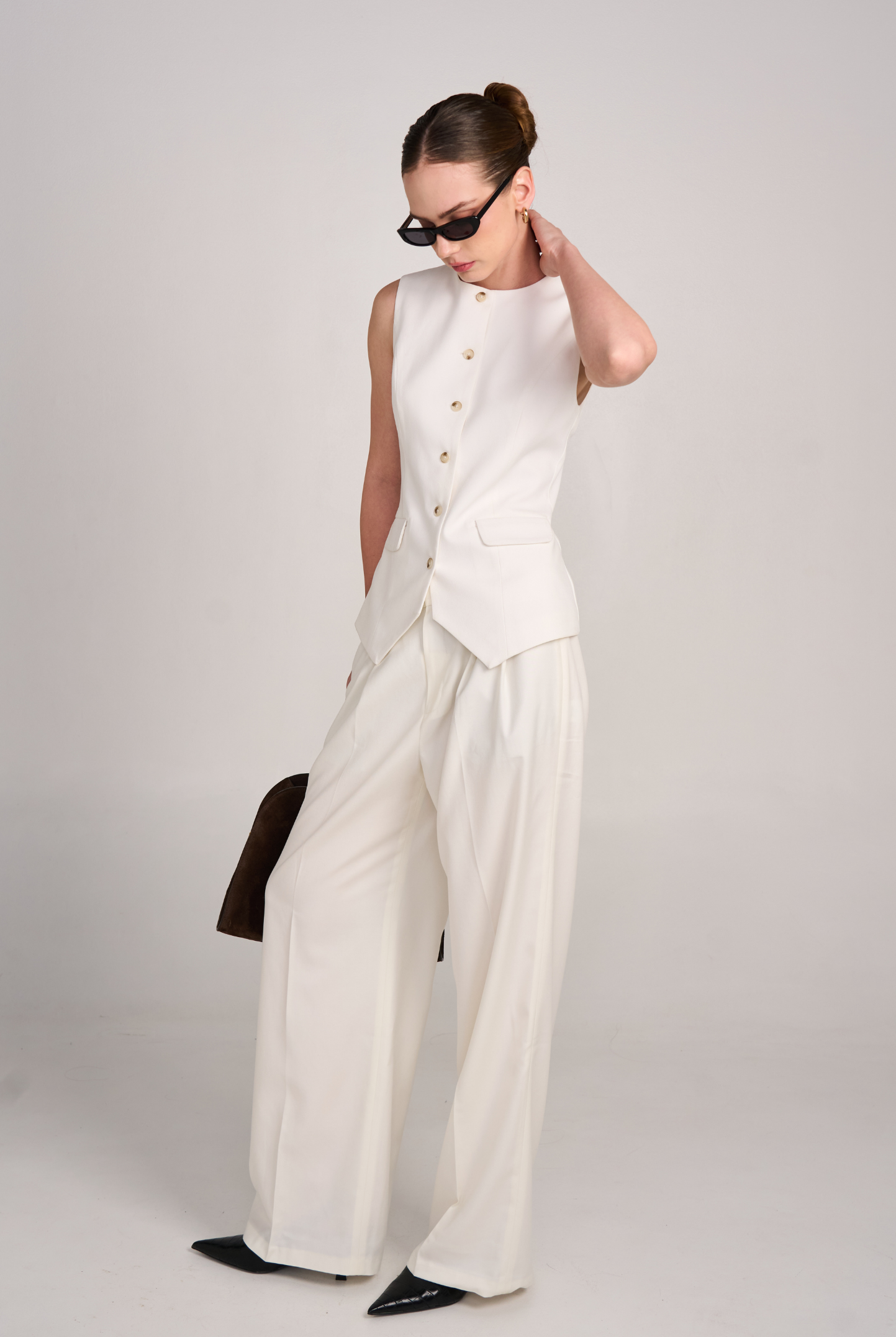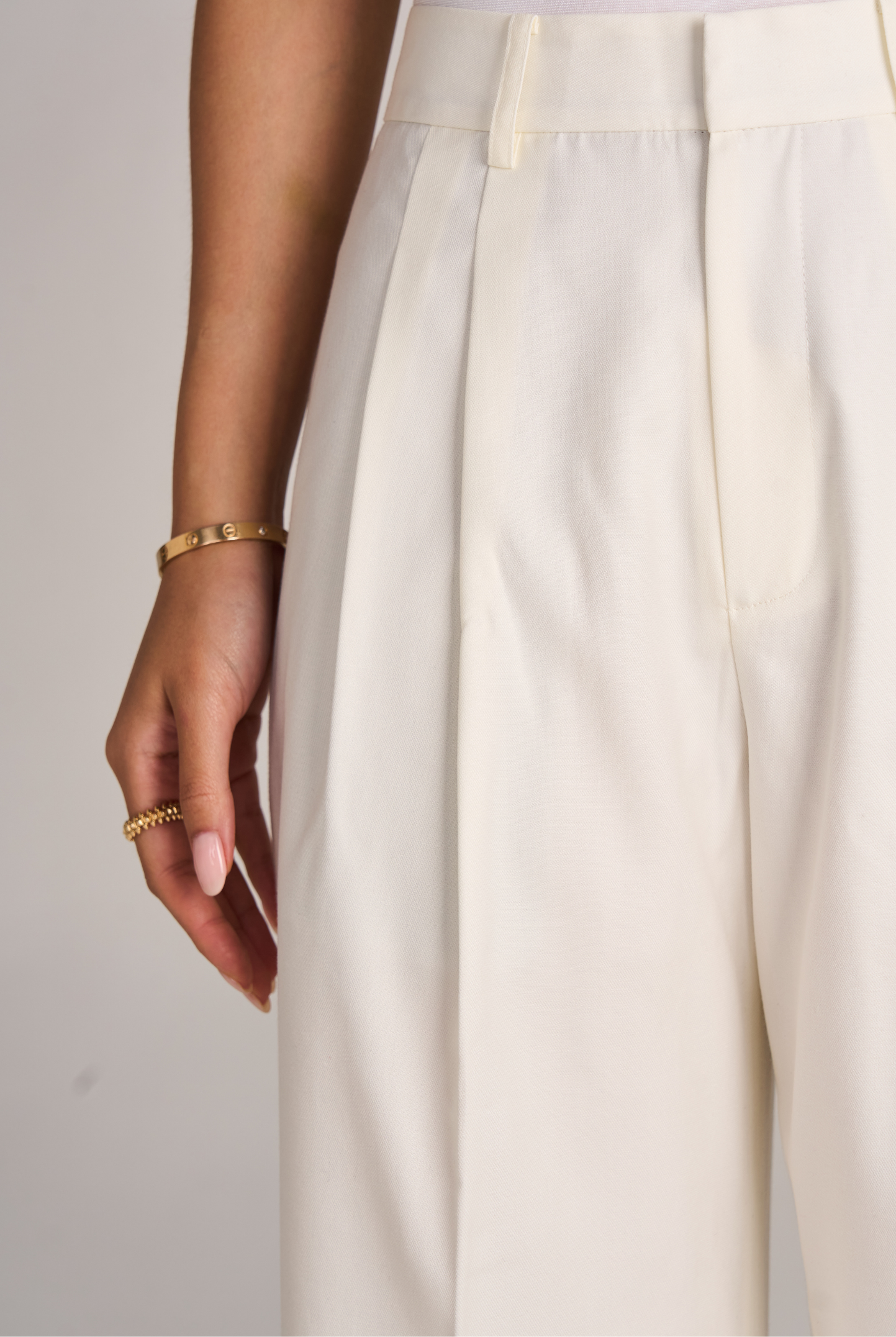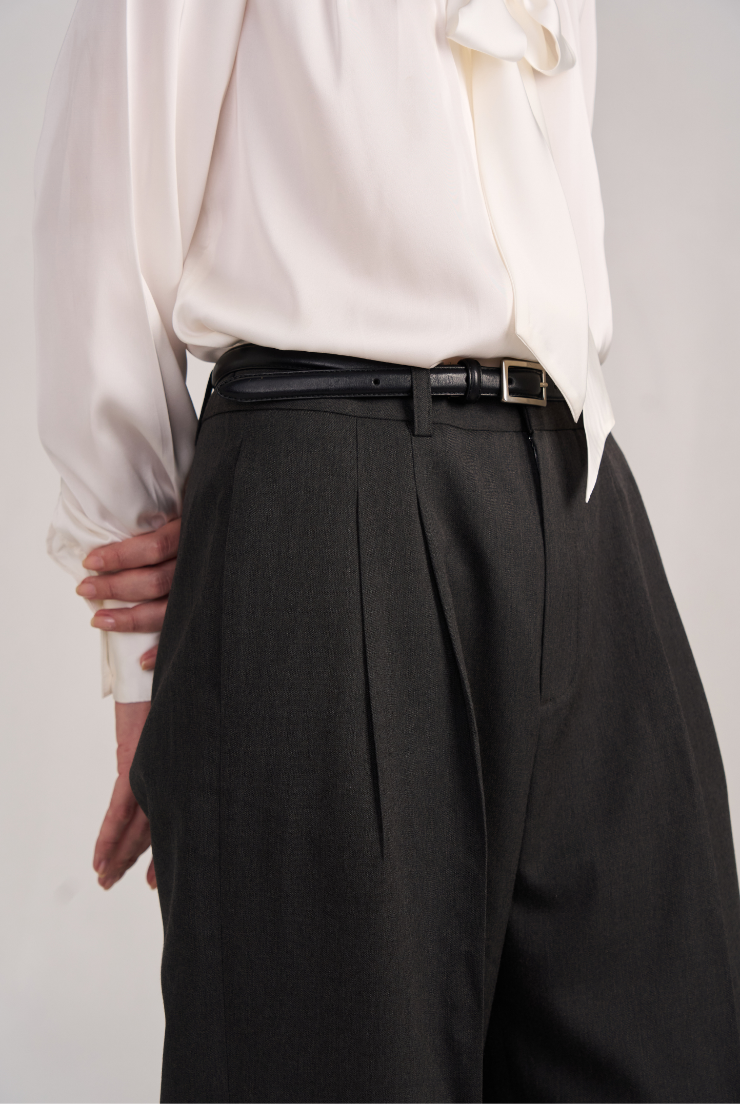 The 02 Essential Pants are a timeless wardrobe foundation — sleek, versatile, and made to flatter. Designed with a high-waisted cut and double darts for a tailored fit, they elongate the legs while offering effortless comfort. The fluid wide-leg silhouette moves gracefully, making them perfect for office wear, evenings out, or everyday sophistication. Available in Black, Ivory, and Grey for endless styling options.