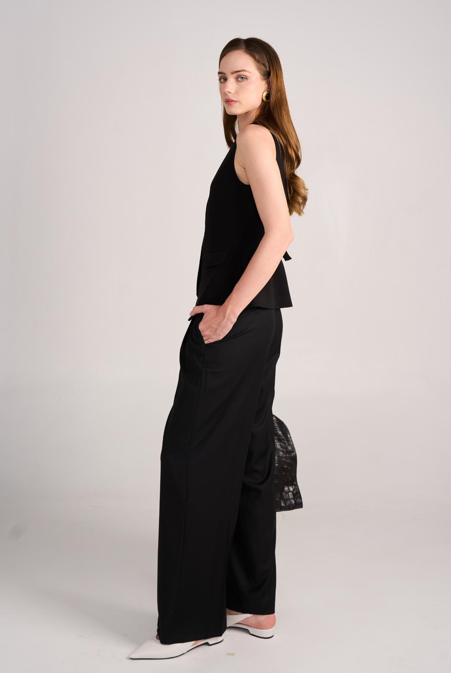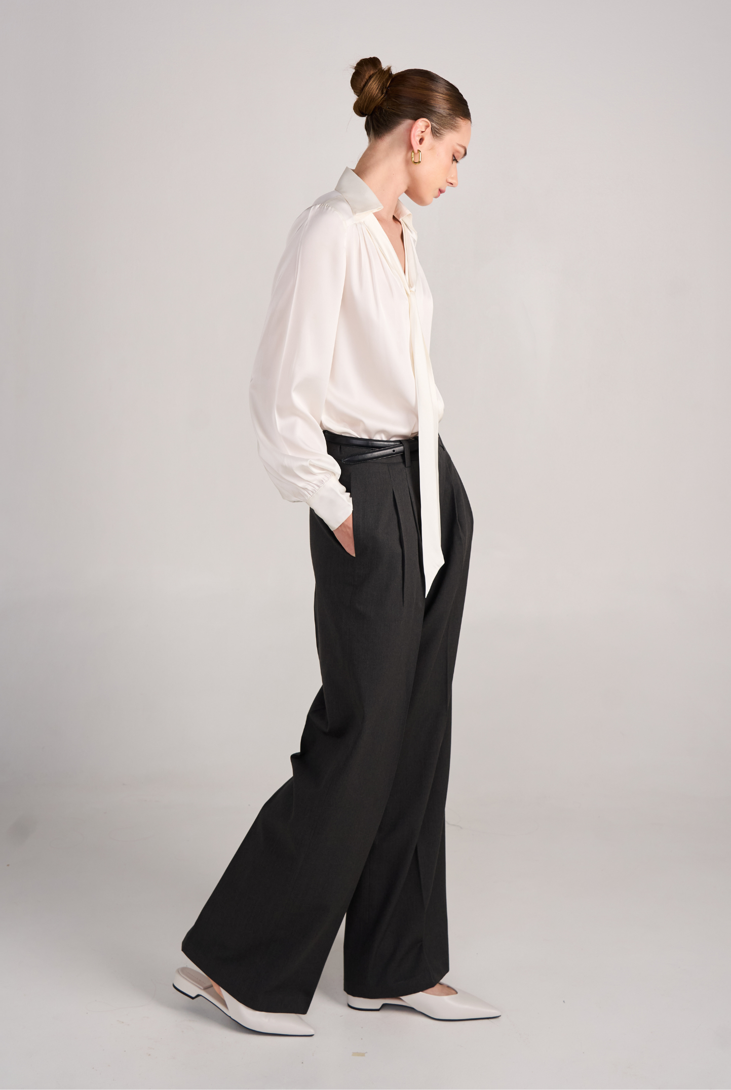 Wide-leg silhouette for elongation and ease