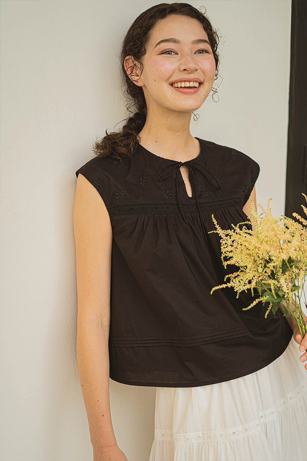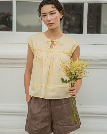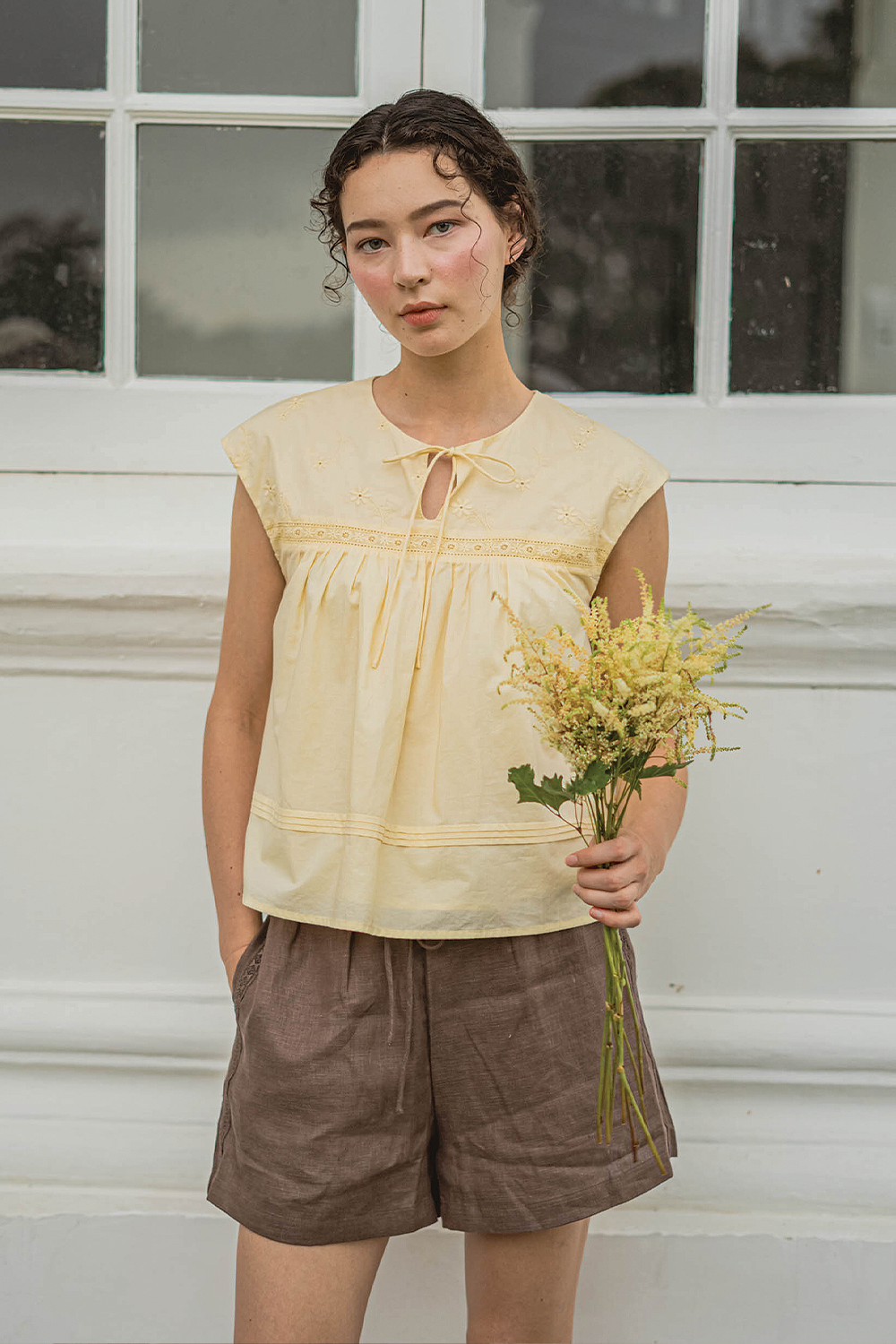 Meet Meadows Broderie Relaxed Blouse - Crafted from 100% Cotton Cambric together with our in-house Meadows Broderie Design. This boxy top boasts a unique keyhole tie detail and gathered accents on the bodice. Together with special touches of floral trims and pin tuck details, this blouse is versatile enough for work and perfect for weekends. Fully lined and best worn relaxed.
