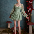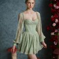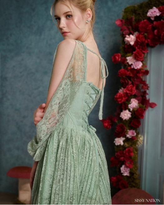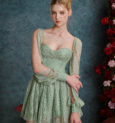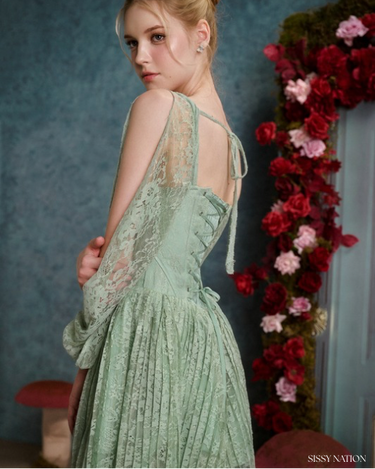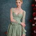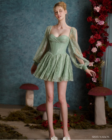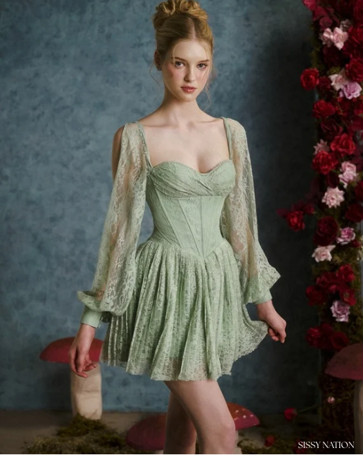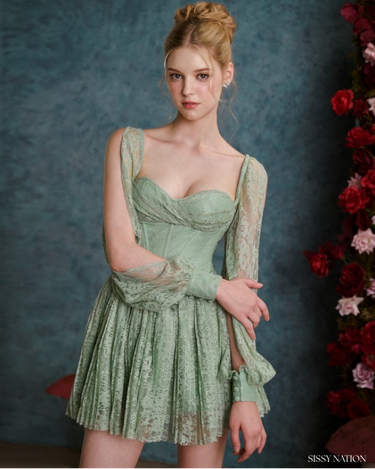 Sprinkled with fairy magic, the Tinkerbell Corset Pleated Mini Dress turns every moment into an enchanted tale. Crafted from delicate lace with intricate floral textures, this design features a sculpted boned bodice and softly pleated skirt that flutters with every step. The dreamy off-shoulder lace sleeves and tie-back detail evoke ethereal charm, perfect for whimsical garden dates or moonlit adventures.