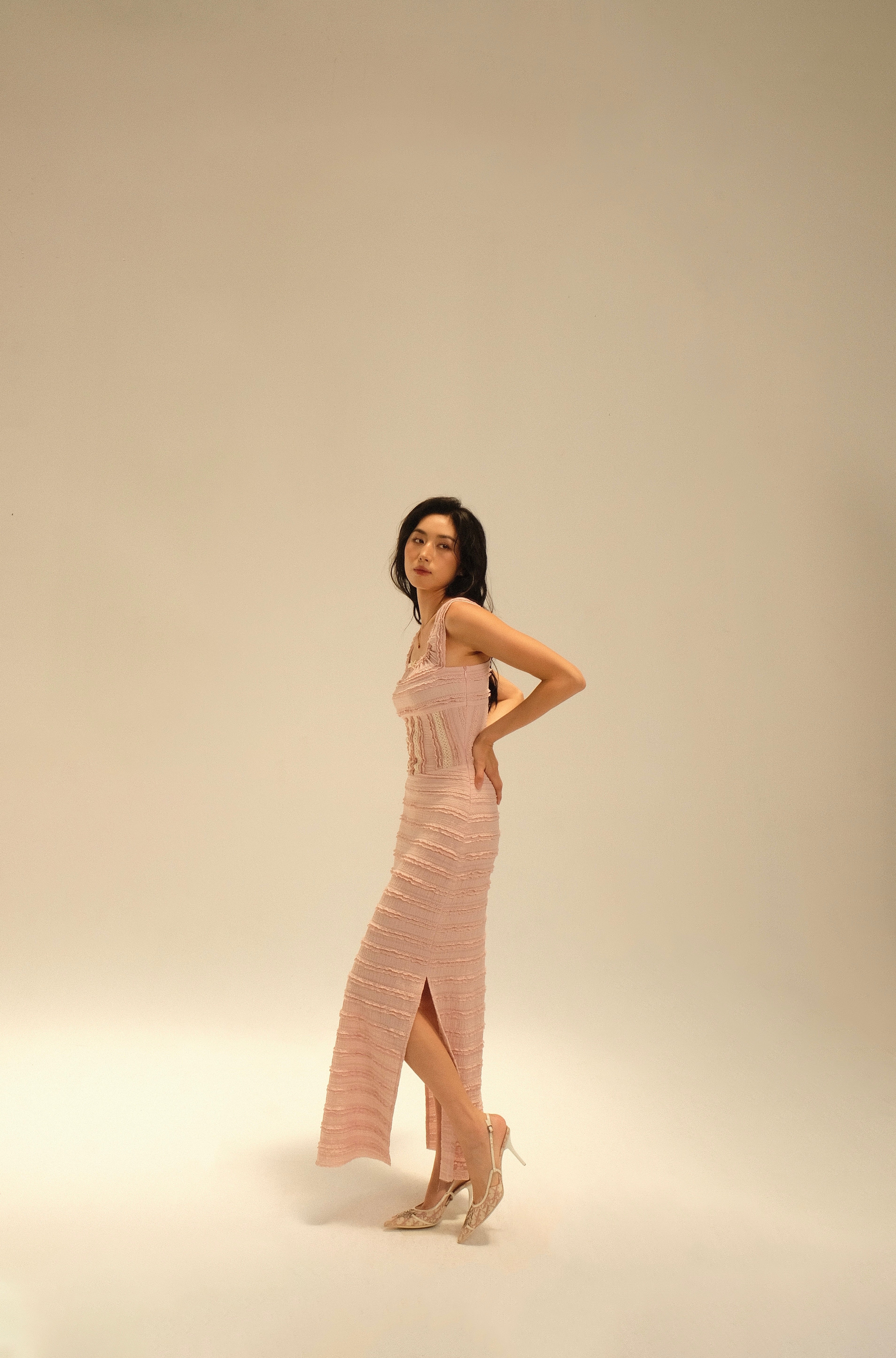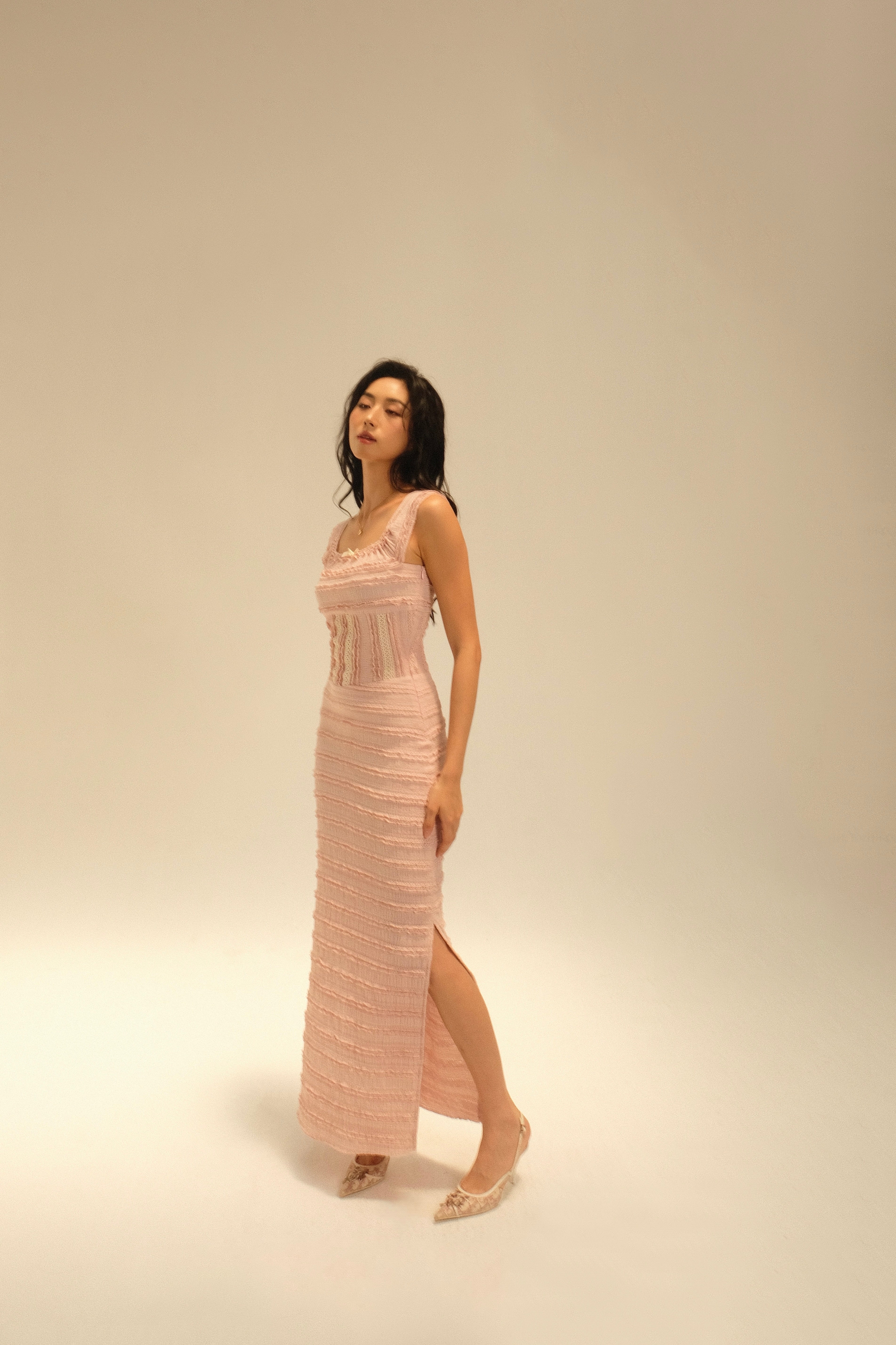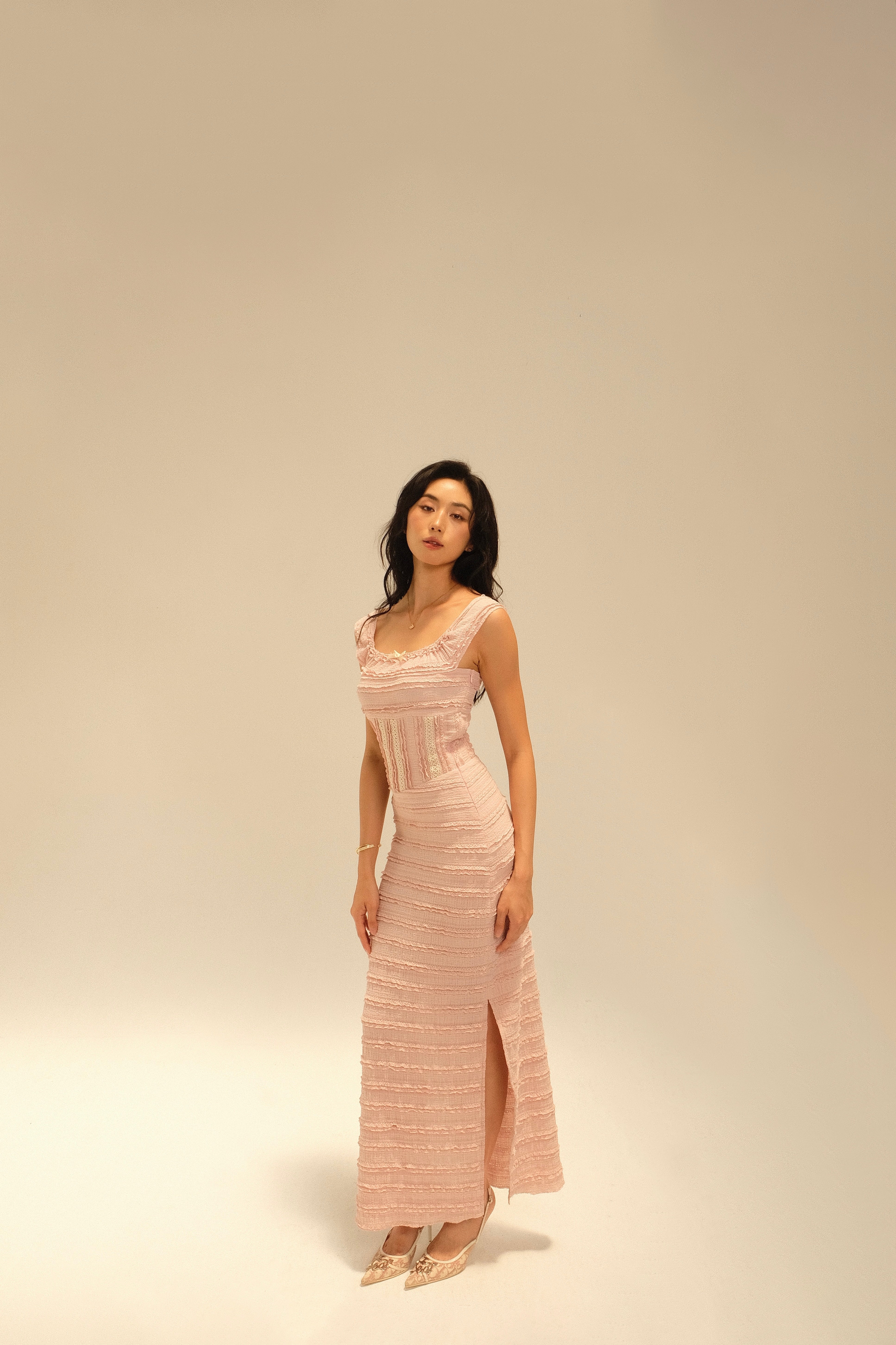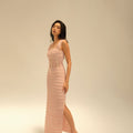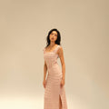 Floor-length silhouette with a subtle slit for just the right amount of allure.
