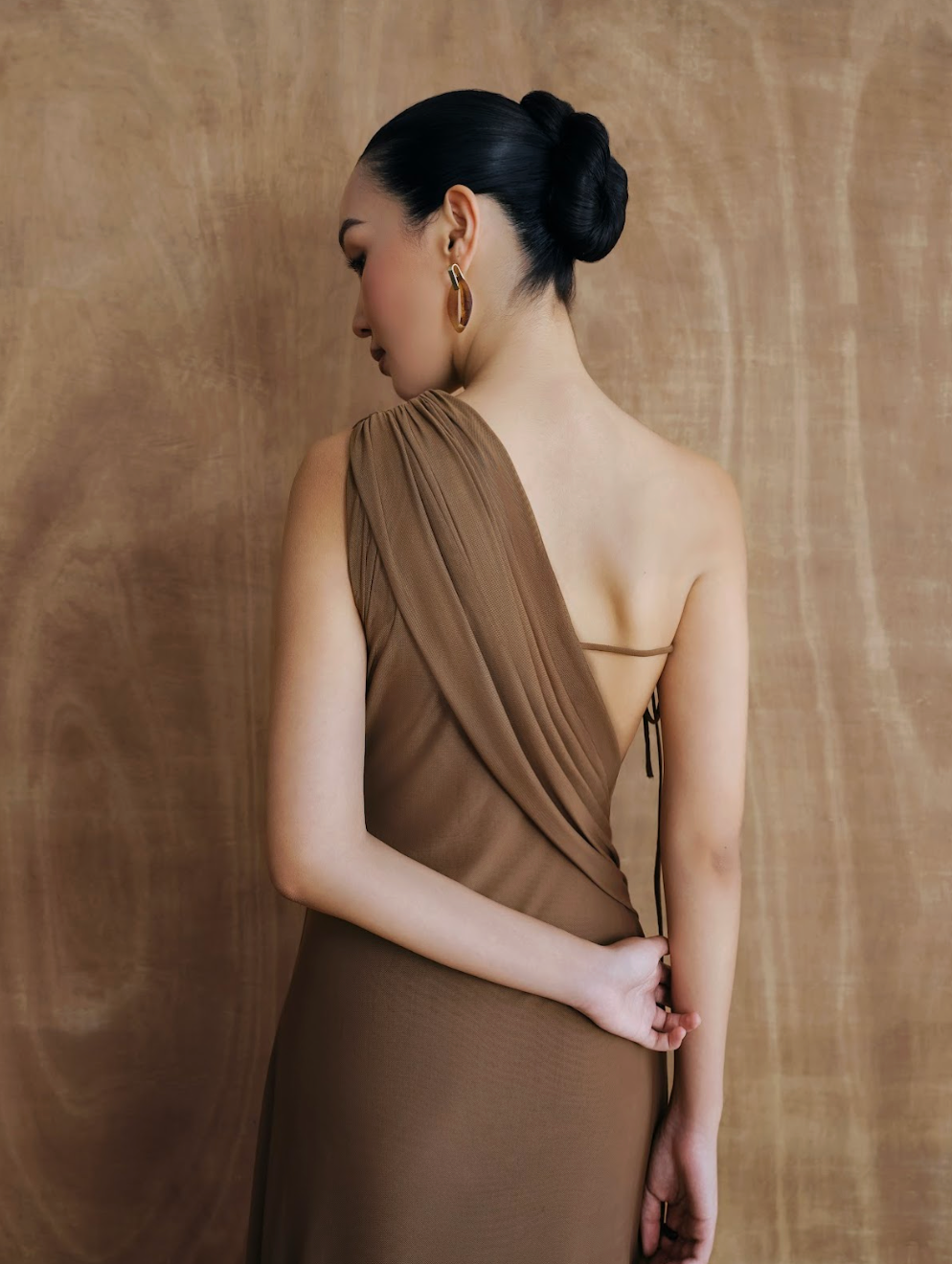 The Terra Drape Gown was born from inspiration drawn from the beauty of natural formations, where soft folds gently embrace the body with subtle elegance, highlighting every curve in an artistic way.