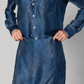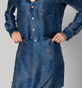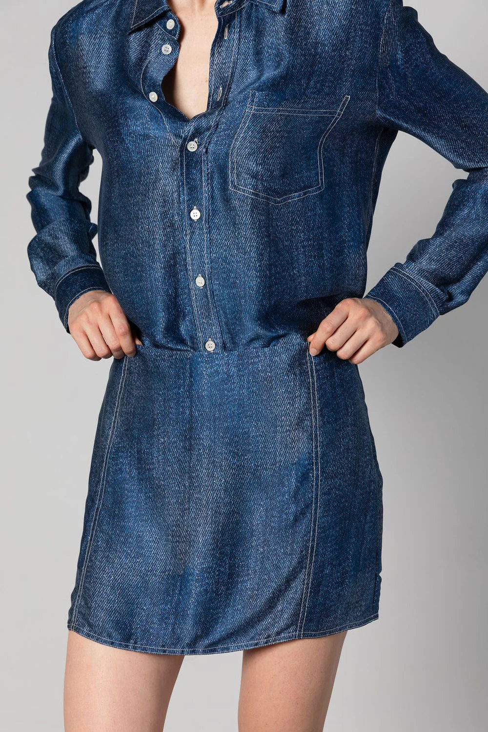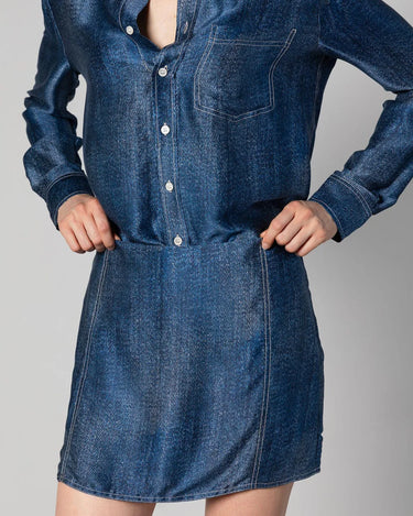 Mini skirt with a dark denim wash print with contrast denim double stitching to give an authentic denim look but with the ultra light weight and comfort of 100% silk. Complete with hidden zip closure seamlessly integrated into the side seam.