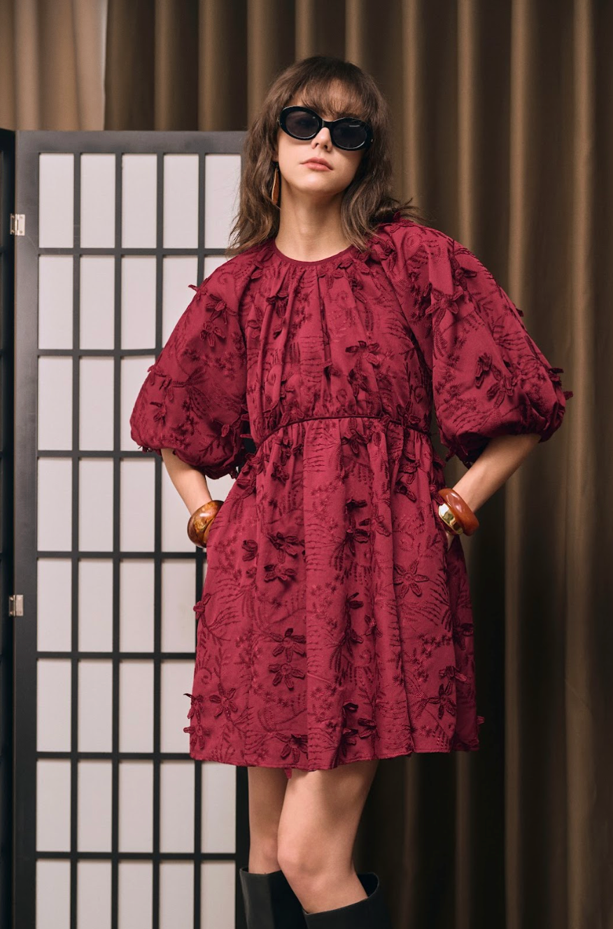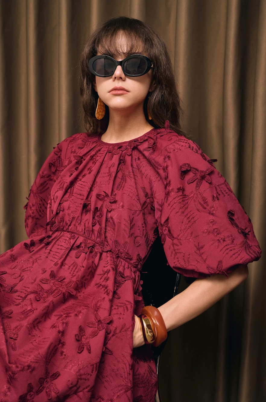 - Crafted from exquisite 3D floral embroidered cotton for an elegant look