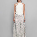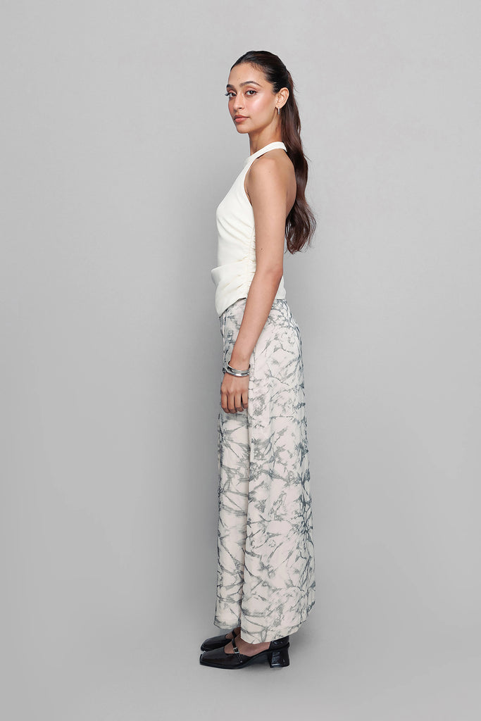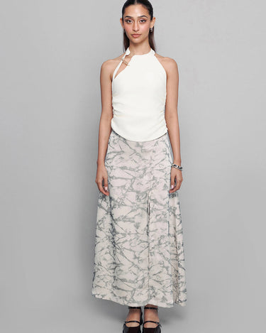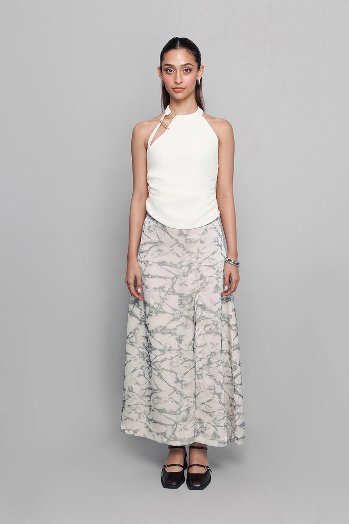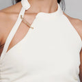Features: Statement brass safetypin, cutout, gathers at side seam
