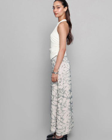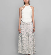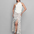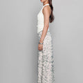 This sleeveless white blouse features elegant accessory detailing on one shoulder. The structured fit adds a polished, refined touch.