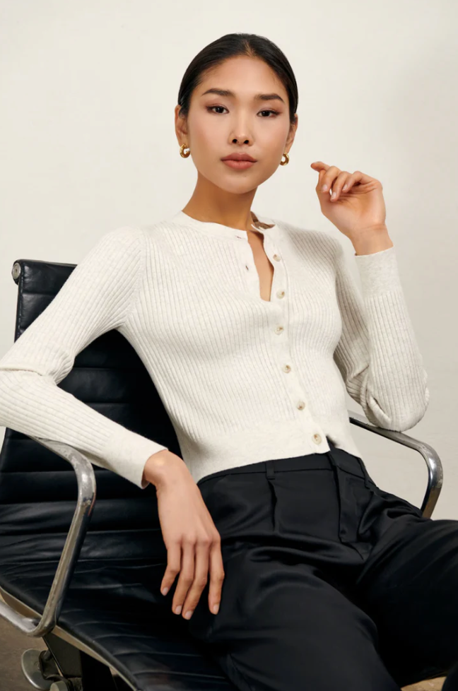 The Hayley - she's a classic. Featuring a slim fit, super comfy cotton blend fabric, long sleeves that hit at the wrist and a crewneck with button placket. Perfect for layering during the colder months or wearing with a light tank for spring. You'll be wearing this timeless staple on repeat.