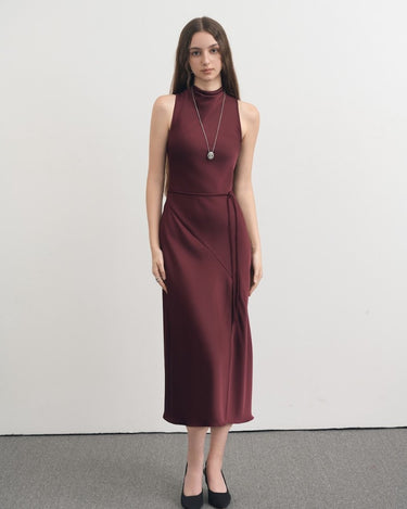 Inspired by the refined sophistication of the fashion capital itself, this wine-red silk dress captures the essence of modern luxury.