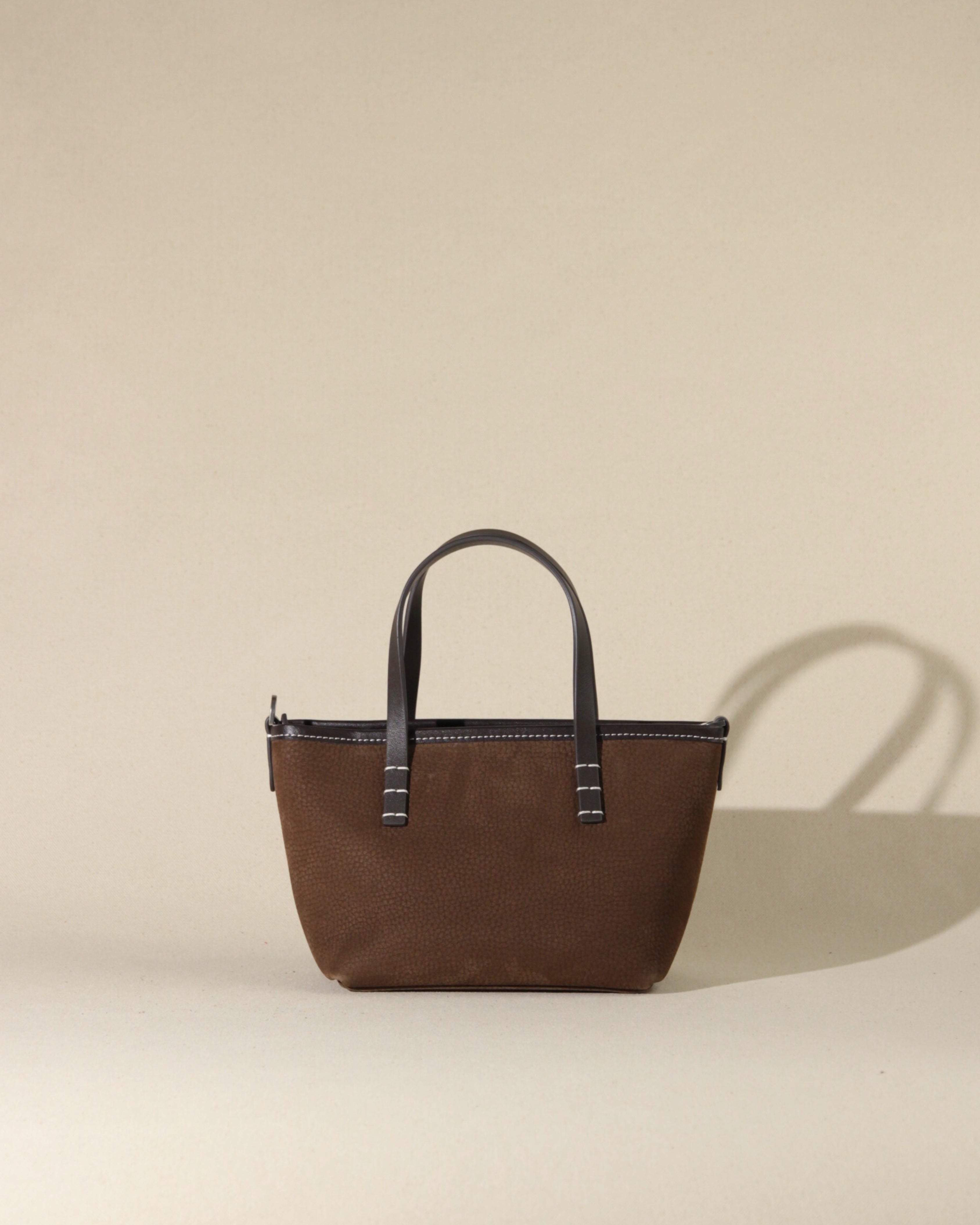The Mille Collection — A mini top-handle bag, refined into a compact everyday piece. Crafted from genuine nubuck leather with a soft, velvety finish, Mille balances structure with softness for an effortless feel. Designed to be carried by the top handle or worn crossbody with the adjustable strap, it moves easily through the day. Mille is compact yet practical—made to hold the essentials, with just enough presence. Quietly distinctive, naturally cool, and designed to be worn on repeat.