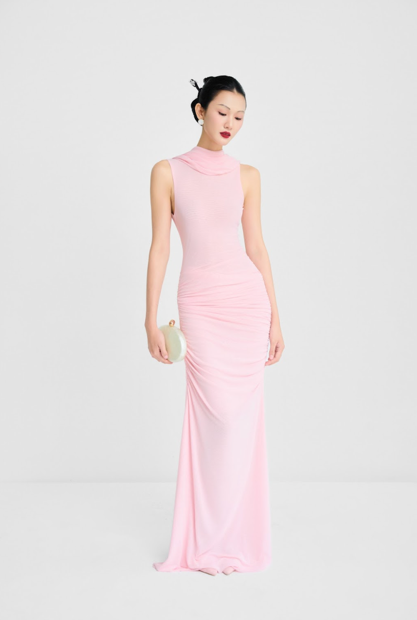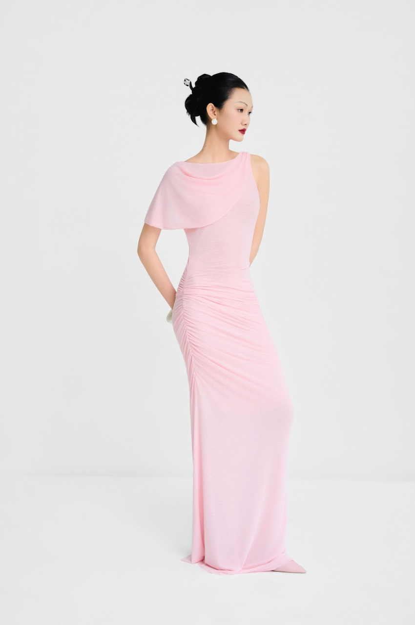 With its floor-length silhouette, this piece is engineered to perfectly accentuate your curves and height. More than a dress, it is a fashion statement for the woman who turns her most beautiful dreams into reality.