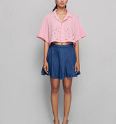 Features: Eyelet detail, Box sleeves, double placket