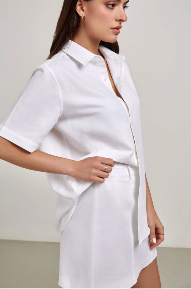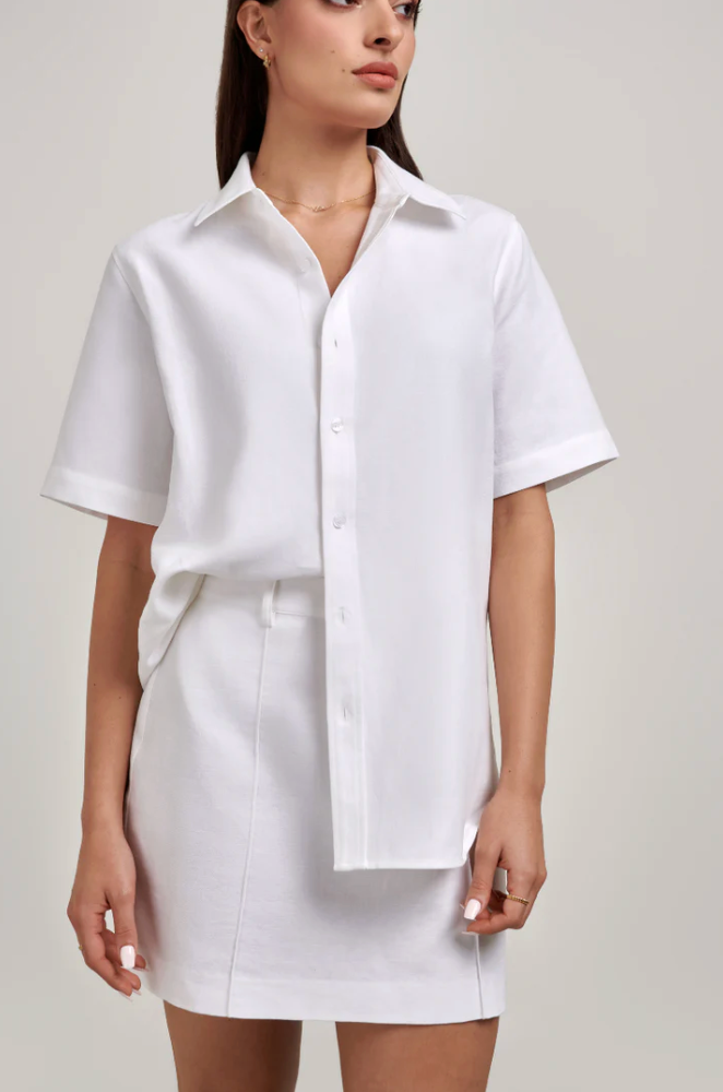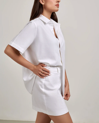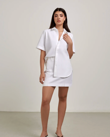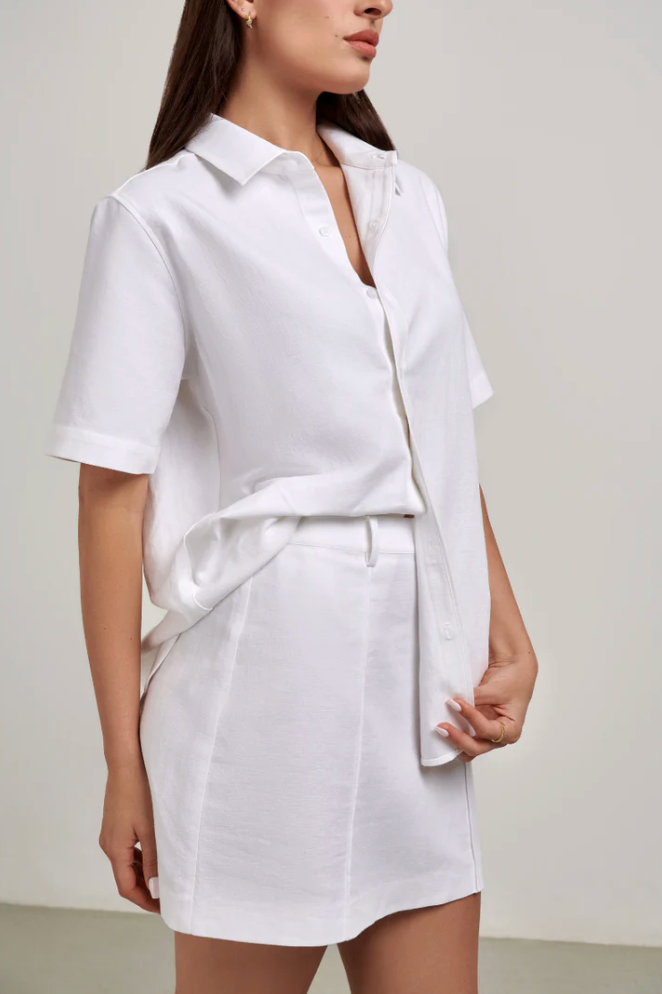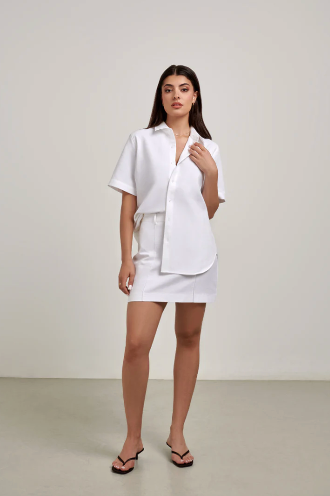The Rosie Mini Skirt is your summer wardrobe staple. Crafted from a cotton linen blend, Rosie is the building block to many outfit variations. Rosie pairs perfectly with Gigi Oversized Shirt or Isla Crop Tank.