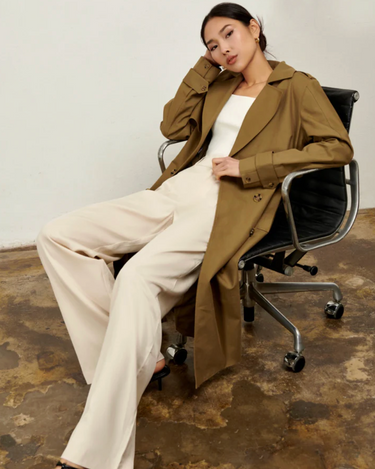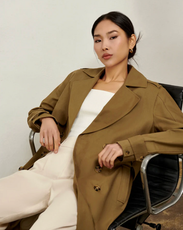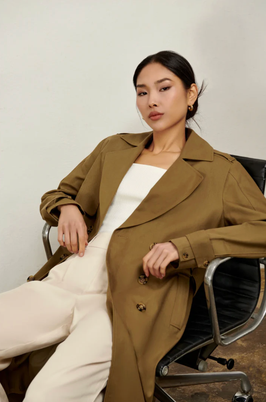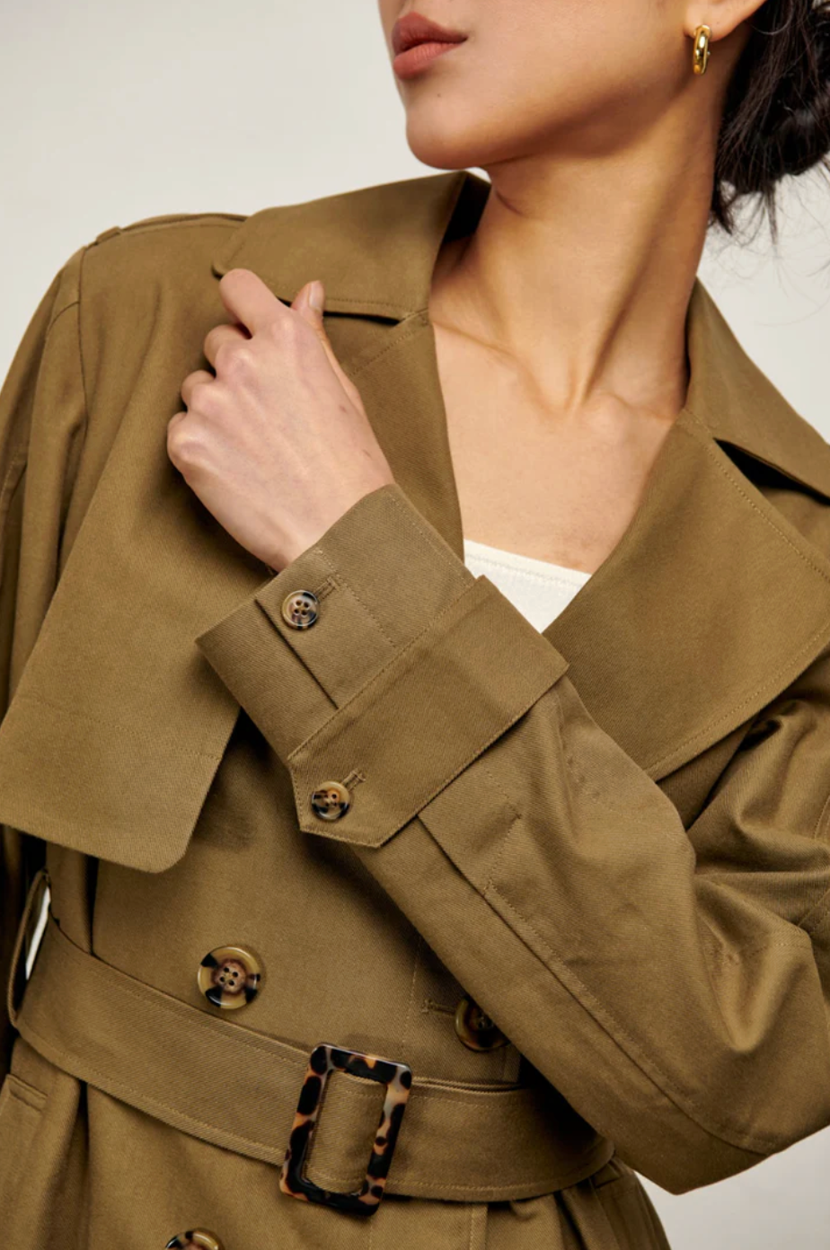 The Sadie is our new classic trench that combines a relaxed fit with perfect tailoring. With tortoise shell detailing and a refined silhouette it is the perfect winter staple that needs to be added to your wardrobe. Simply layer over The Nora jumper or The Pippa bodysuit for an effortlessly chic look.