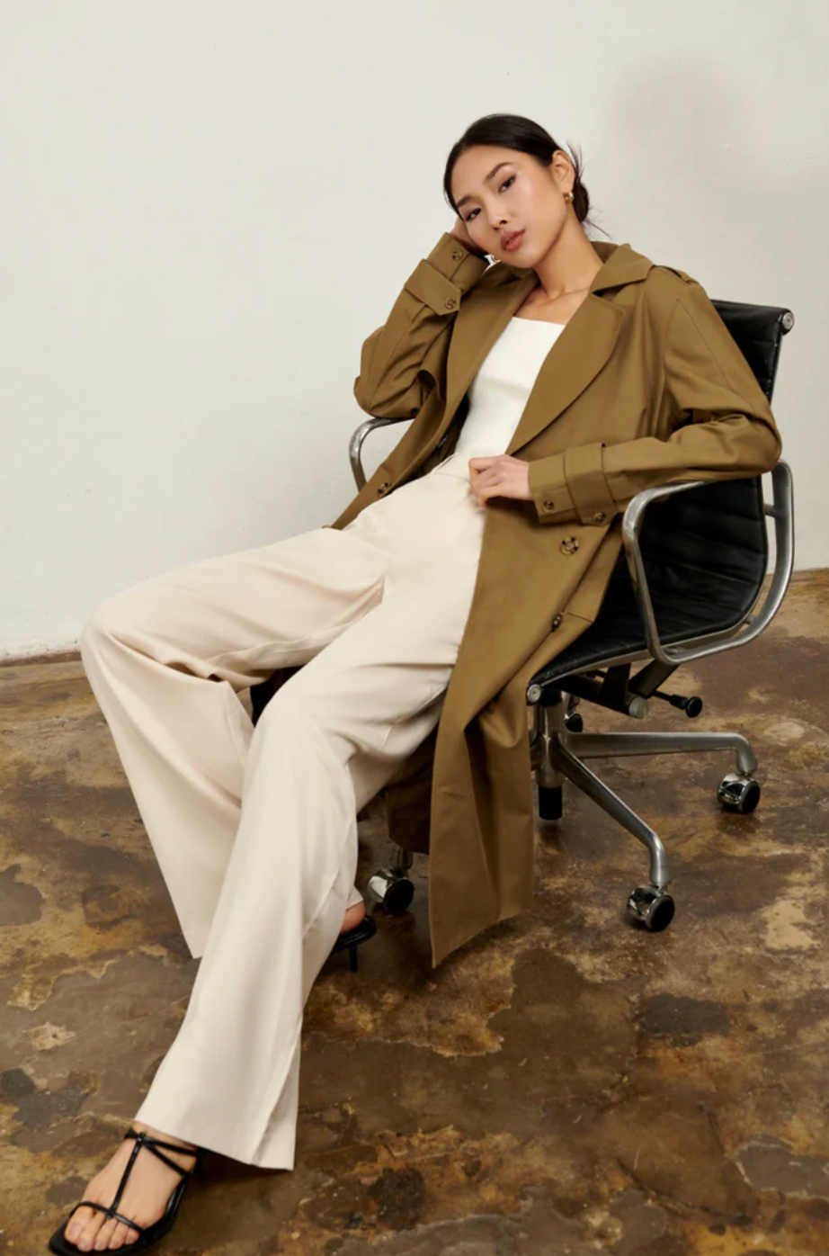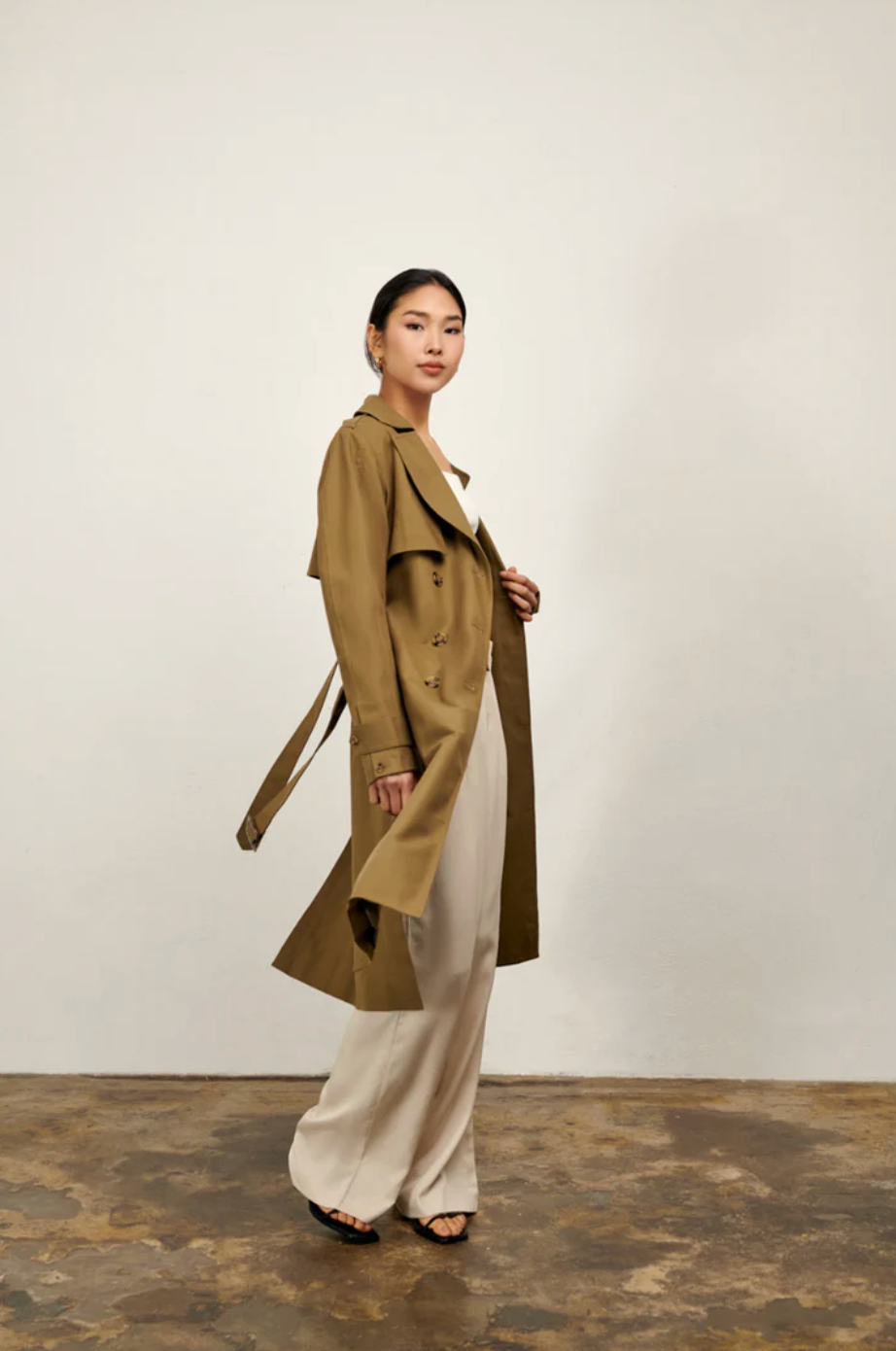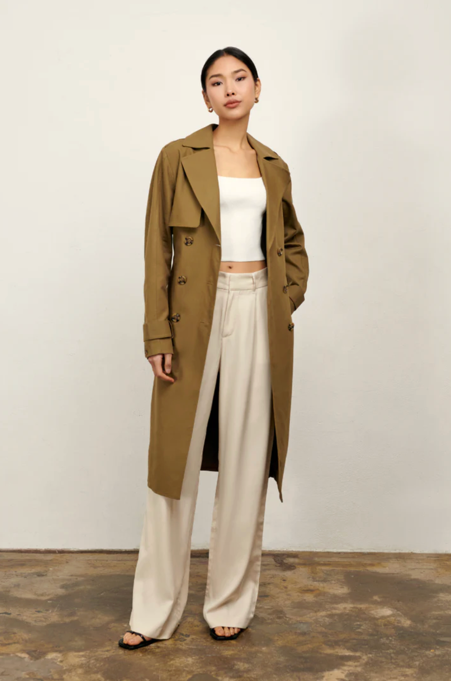 The Sadie is our new classic trench that combines a relaxed fit with perfect tailoring. With tortoise shell detailing and a refined silhouette it is the perfect winter staple that needs to be added to your wardrobe. Simply layer over The Nora jumper or The Pippa bodysuit for an effortlessly chic look.