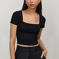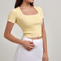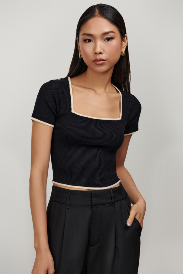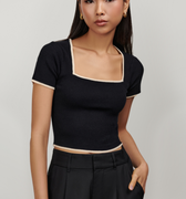The Ella, the perfect knit top for any wardrobe. This short sleeved knit top has a breathable cotton rib detail that comfortably hugs your body. With our signature square neckline it is a universally flattering style that you'll be wearing over and over.