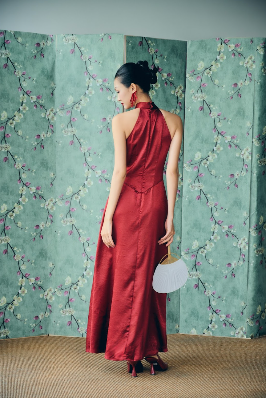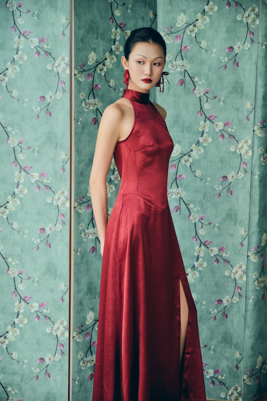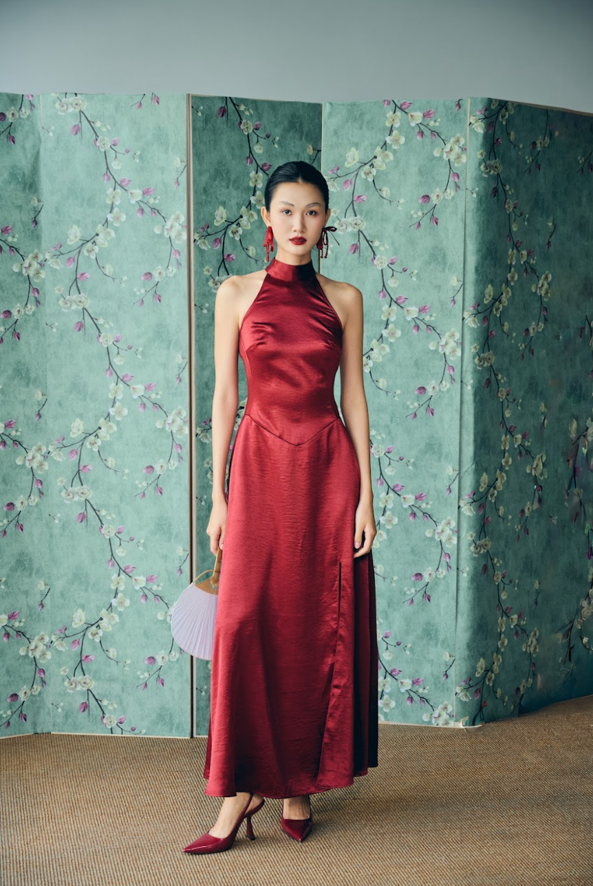 Inspired by the delicate romance of the tuberose flower, this piece features luminous silk that dances as you move. Its minimalist silhouette is elevated by exquisite pleating, mimicking the soft unfurling of petals.