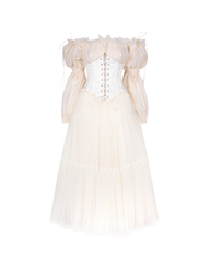 A cloud in motion, the Ivory Tulle Skirt is a gentle whisper of elegance. Crafted from layers of airy, tiered tulle, it floats with every step, offering a timeless silhouette full of romance and grace. The soft ivory hue evokes purity and poetry, perfect for pairing with structured corsets or delicate knits.